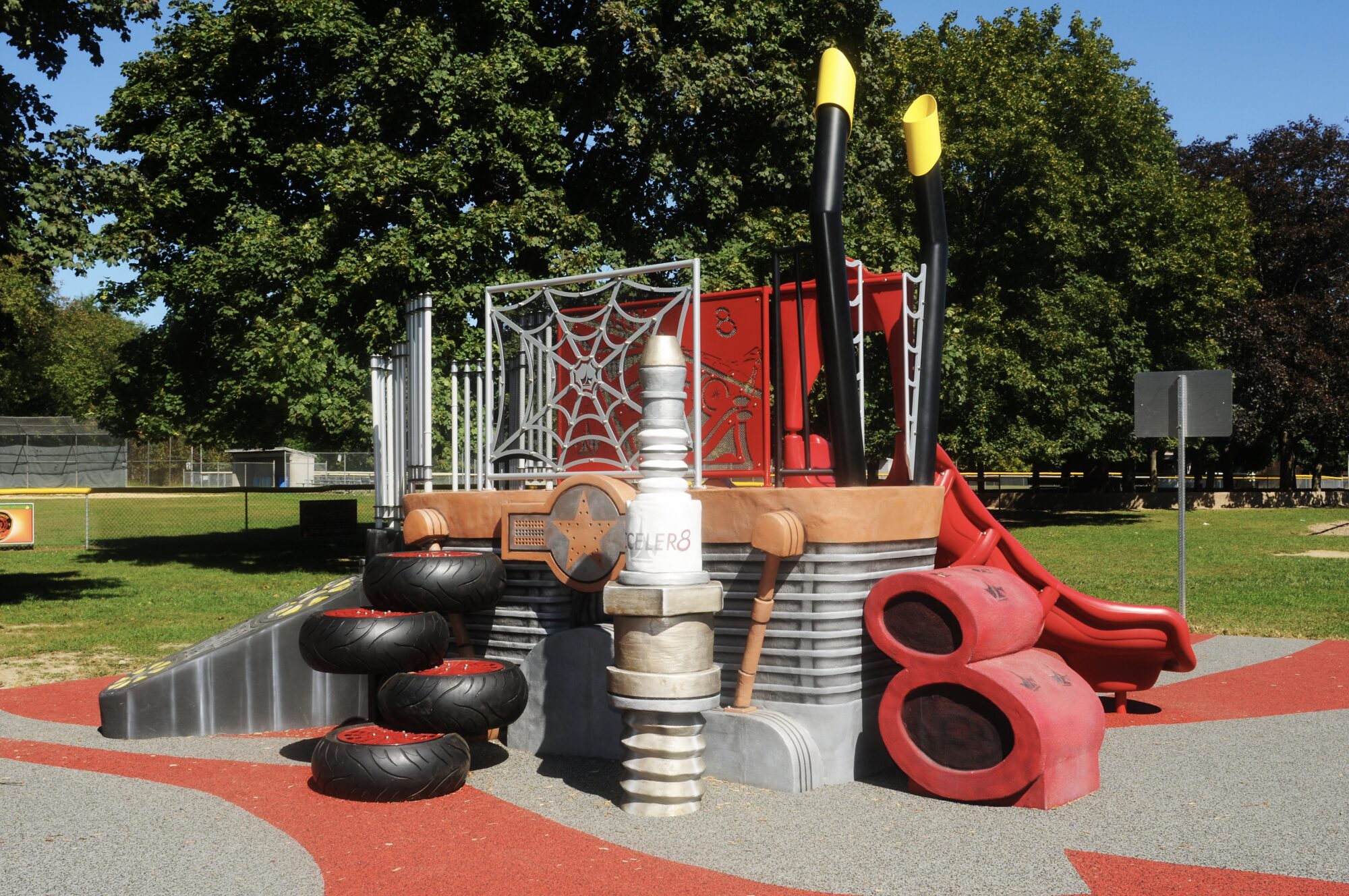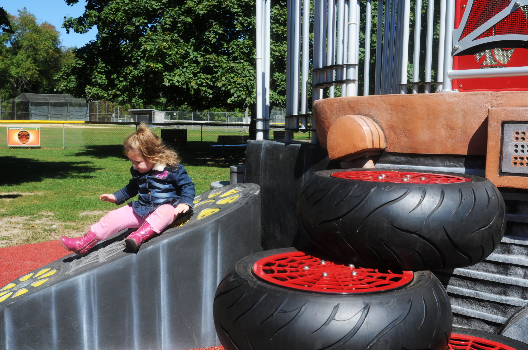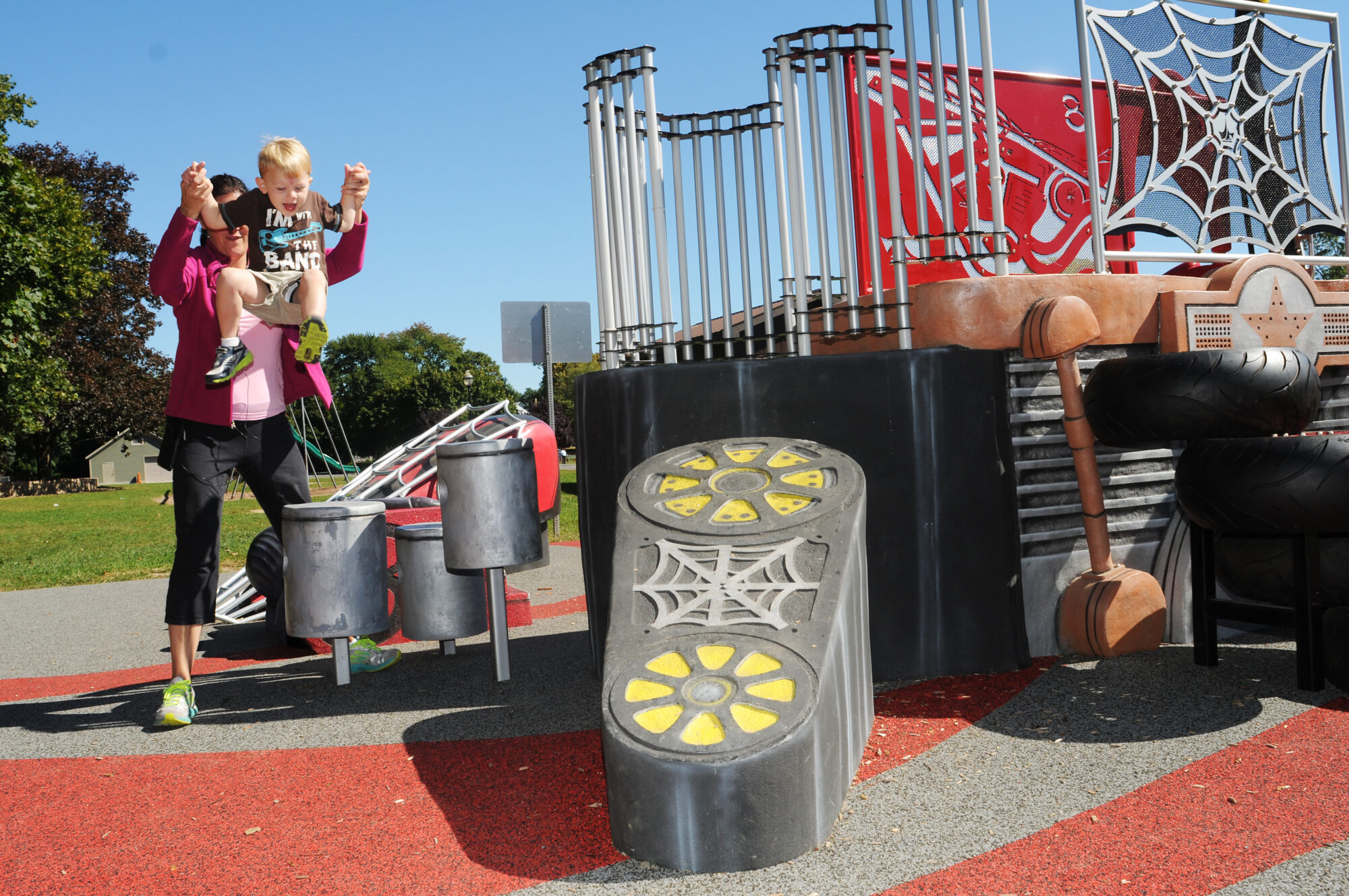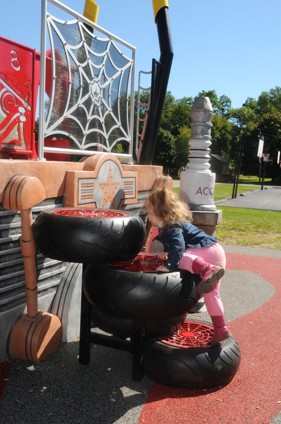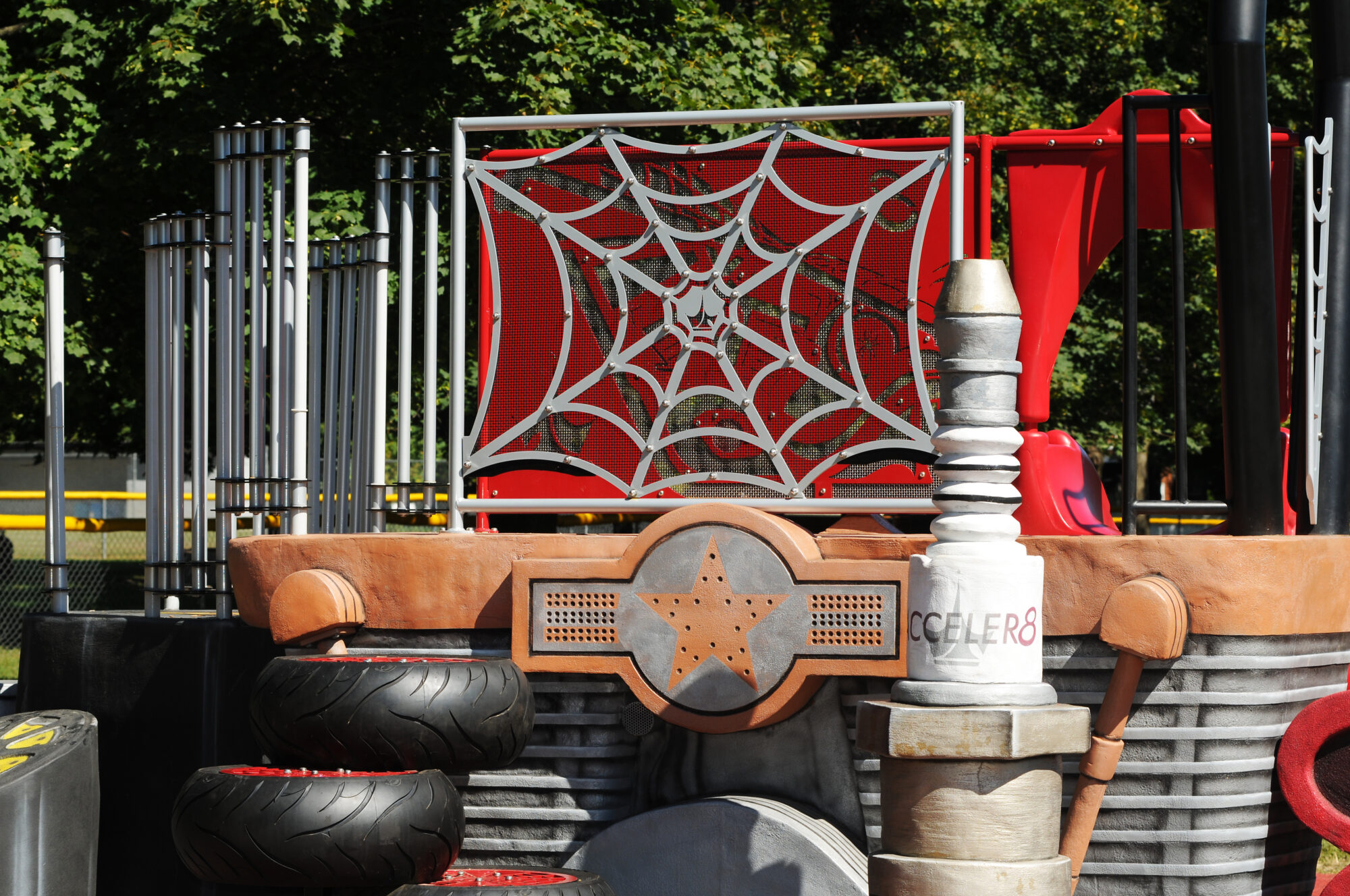 Cre8Play designed and built this one-of-a-kind motorcycle-themed playground for Paul Jr. Designs of American Chopper and is located at Veterans Memorial Park. This fun and unique experience features play climbers and products modeled after the show’s Black Widow and Anti-Venom motorcycles.