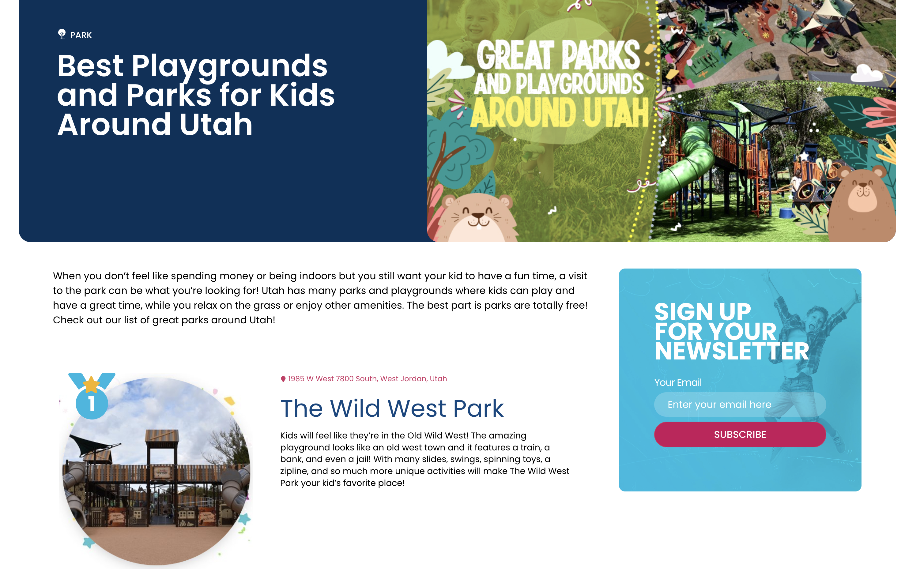 Kid City Guide put together a list of the Best Playgrounds and Parks for Kids Around Utah and Wild West Jordan Playground was voted #1 !!!