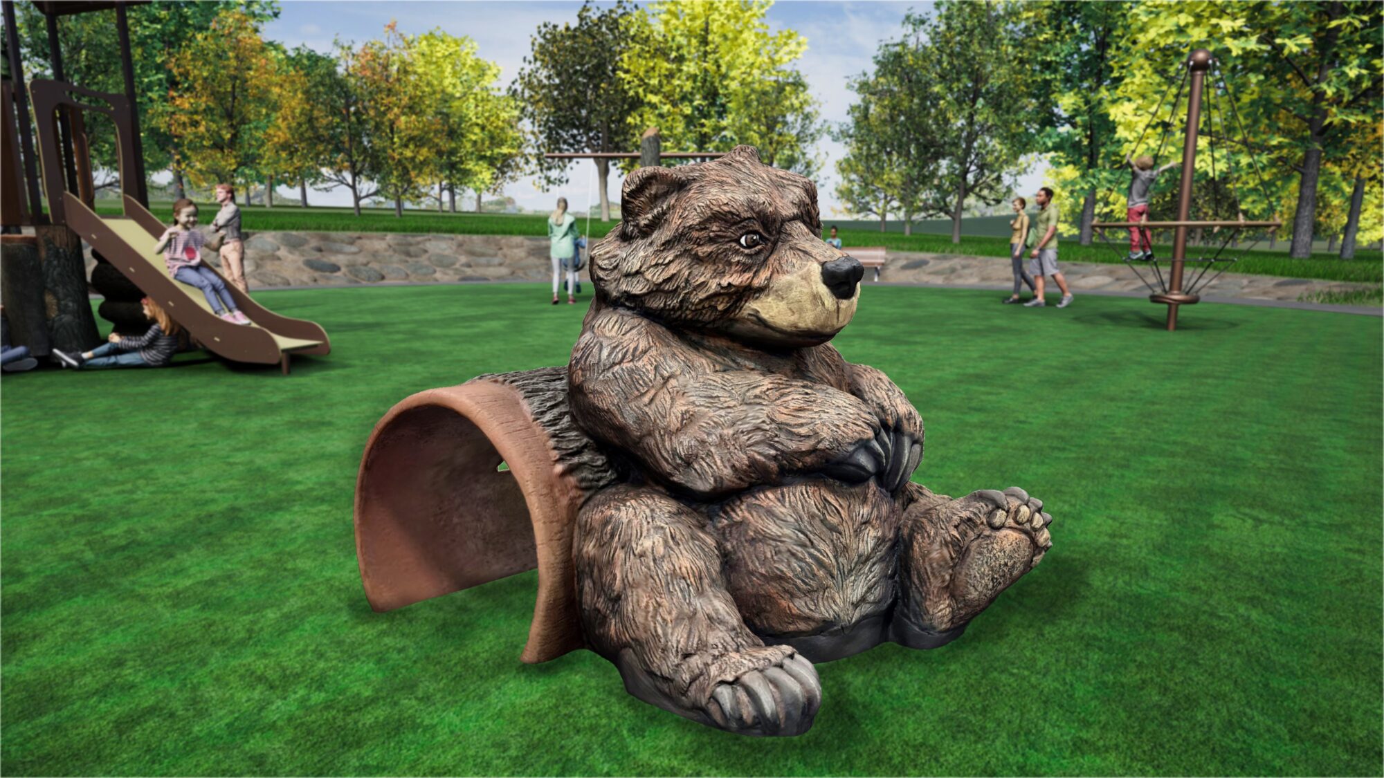 Crawl, climb, snuggle and snap a photo with this unique Bear! Built from our proprietary blend of glass fiber reinforced concrete (GFRC) to achieve an amazing look and feel and for extreme durability.