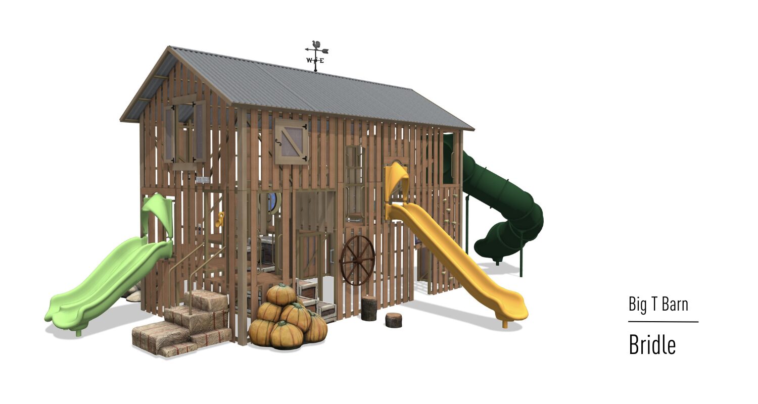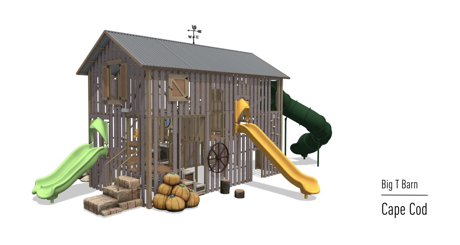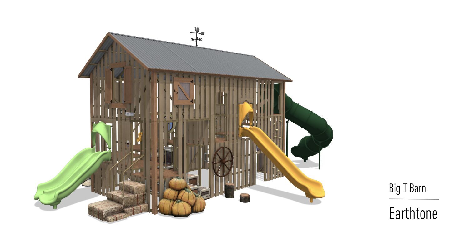 The Big T Barn is quickly becoming one of our most popular play systems! Kids of all ages find challenges as they climb, slide and socialize. This barn has it ALL!! Loaded with farm-fresh-fun from a pumpkin climber, wall climber and slides, to scavenger hunts, interactive games and more! Make sure to reach out to see what all the moo-ing is about!