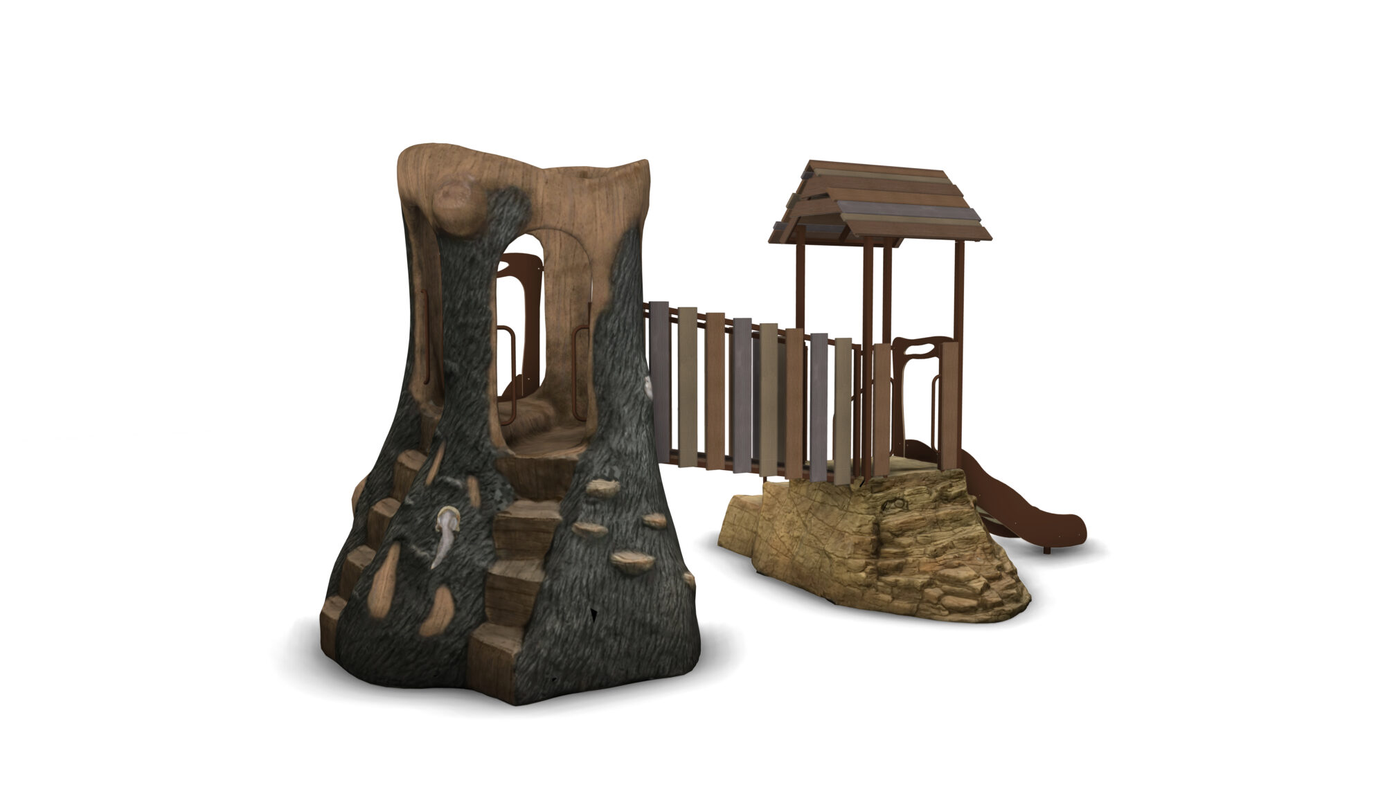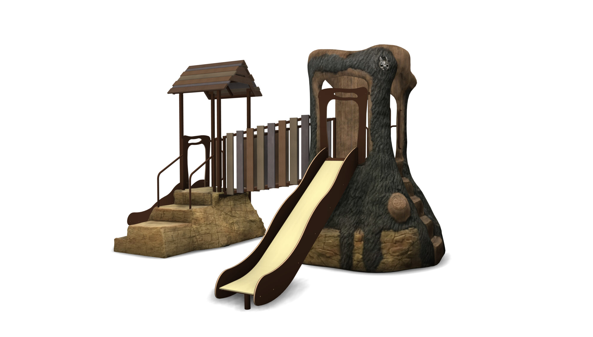 Hobbit Hollow is a complete play system in our Deep Woods product line featuring modular components. Our materials are selected to withstand extreme conditions and our proprietary blend of glass-fiber reinforced concrete(GFRC) allows us to achieve an amazing look and feel.