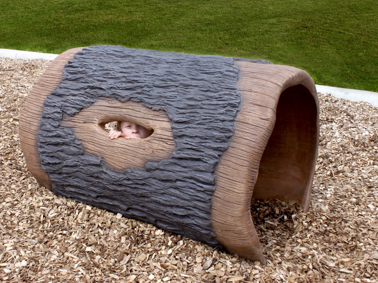 Constructed of Glass Fiber Reinforced Concrete (GFRC), the Hollow Log is handcrafted and replicates the look of a natural tree with peeled bark. Barrel and Baseball Bat Crawls are a great accent to any playground. Enjoyed by kids AND dogs! ?
