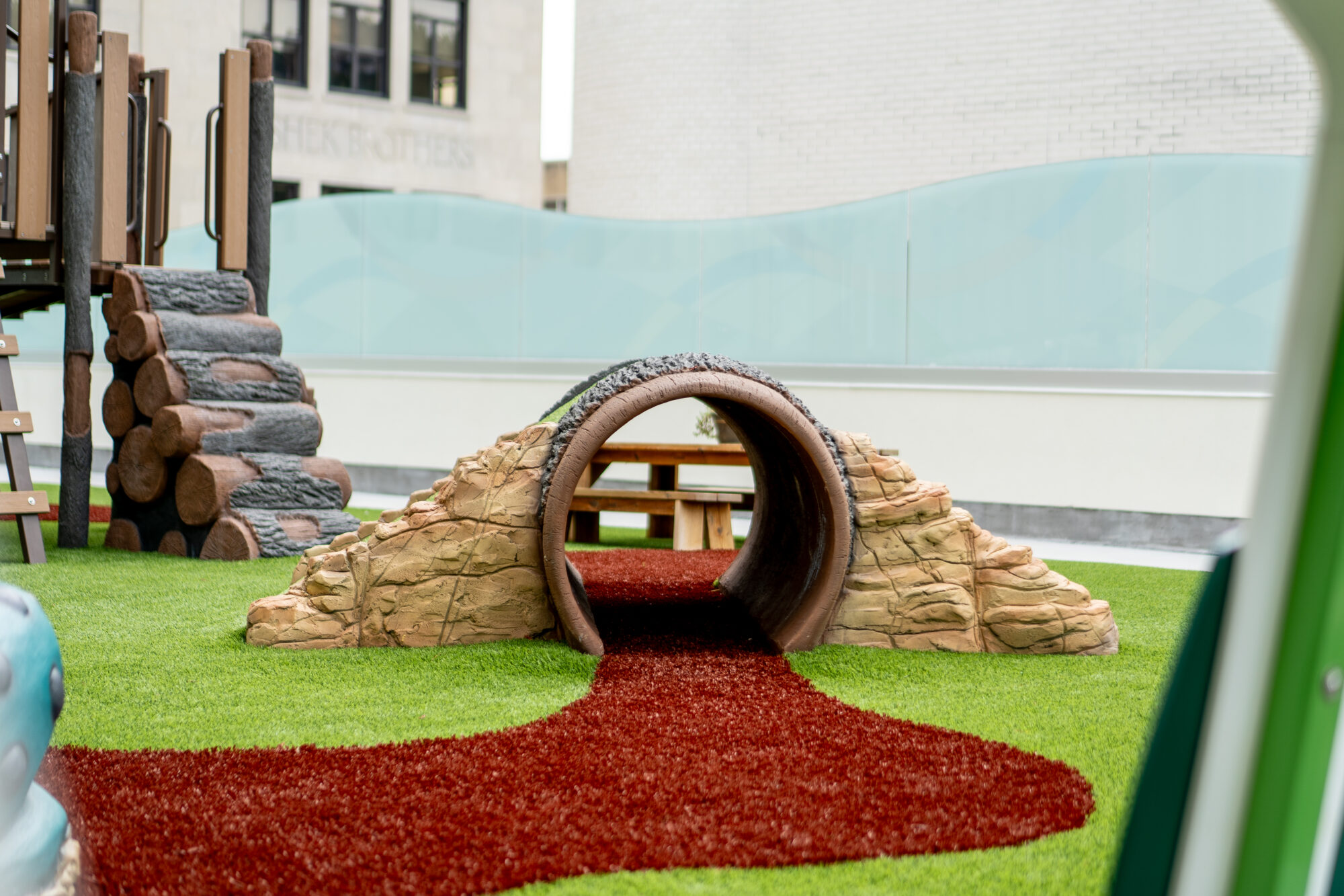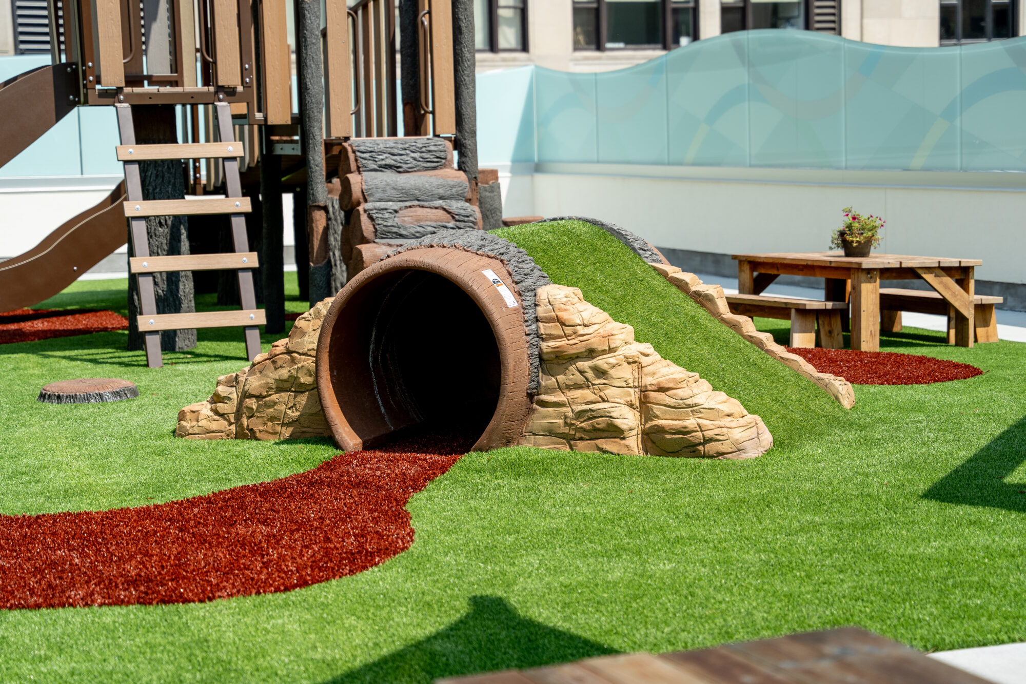 The Log Mound Tunnel is a fun themed climber with varying crawling and climbing challenges. Constructed of durable Glass Fiber Reinforced Concrete (GFRC), this crawl was built to withstand the most extreme environments. Its unique design allows for 360 degrees of climbing and features integrated handholds and realistic textures.