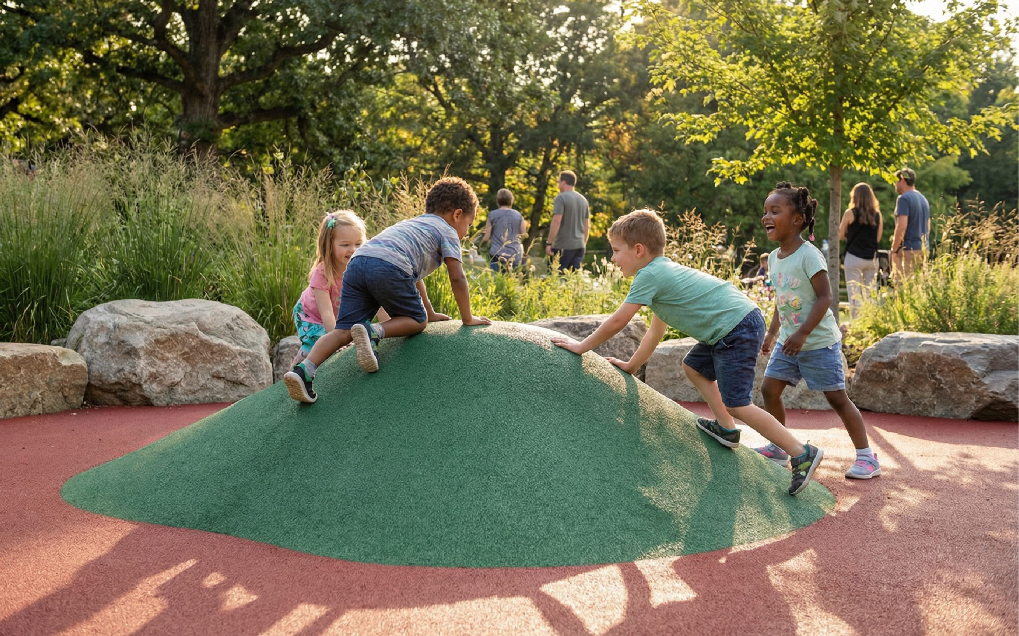 Offering the same 360 degrees of open-ended play as the Mono, the Mesa Play Mound is a bit more sprawling. Kids will climb, roll, lounge on this inclusive play mound that is perfect for any playground theme.