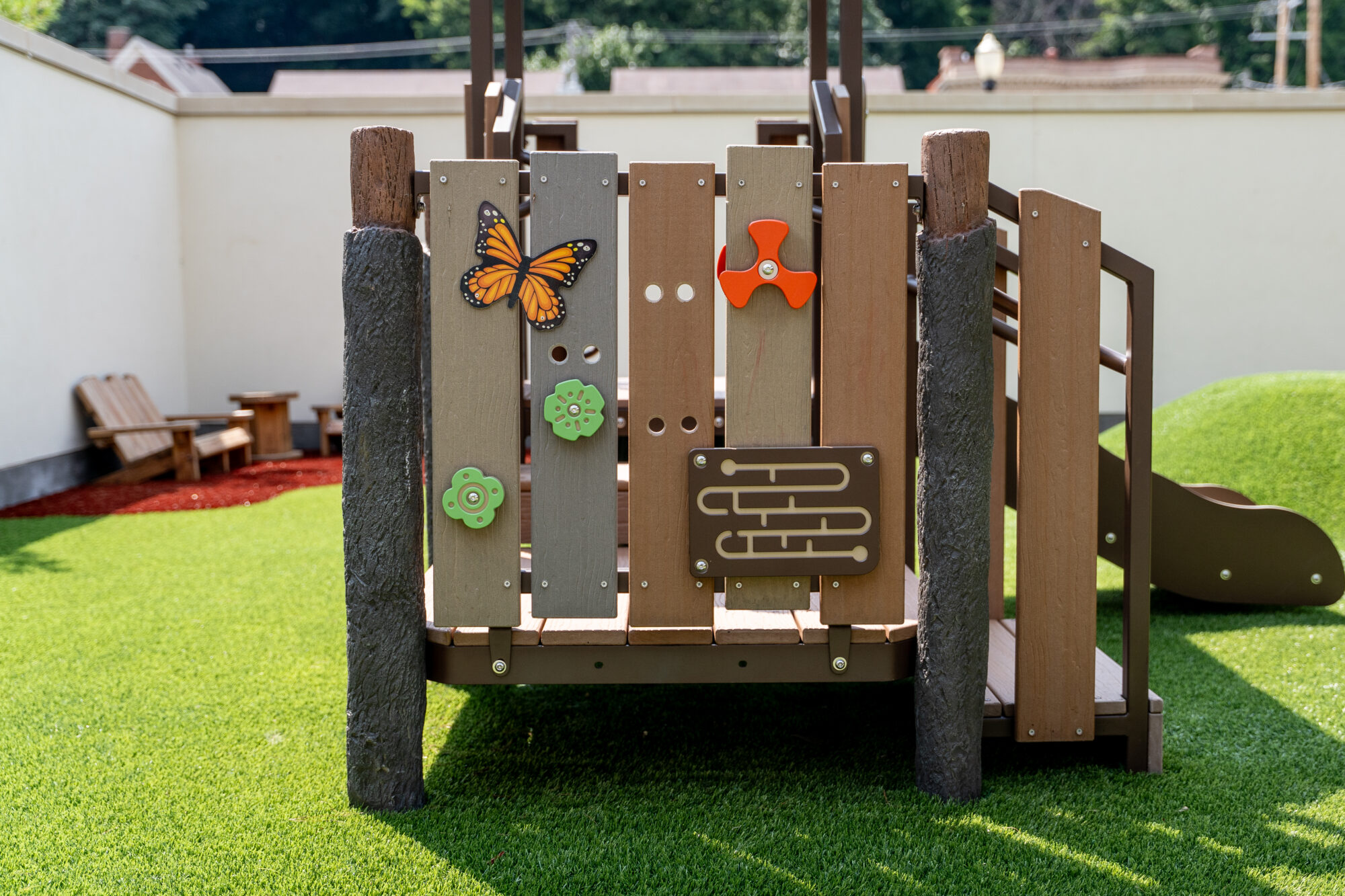 Patty Cake (age group: 2-5 yrs) is a complete play system in our Deep Woods product line featuring modular components including multiple access points and interactive sensory games. Our materials are selected to withstand extreme conditions and our proprietary blend of glass-fiber reinforced concrete(GFRC) allows us to achieve an amazing look and feel.
