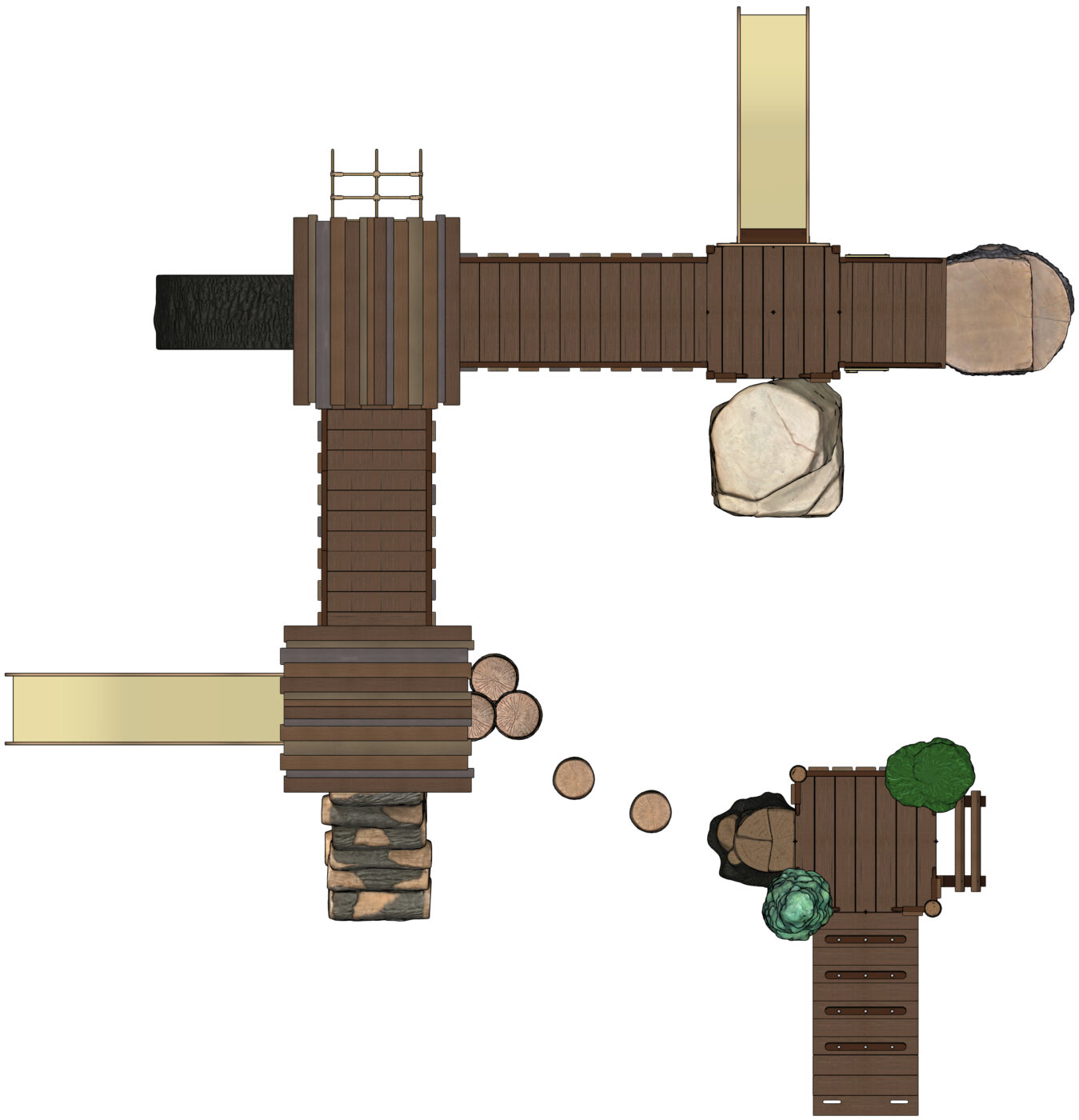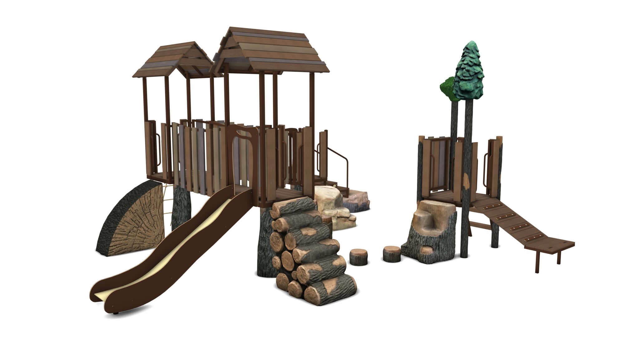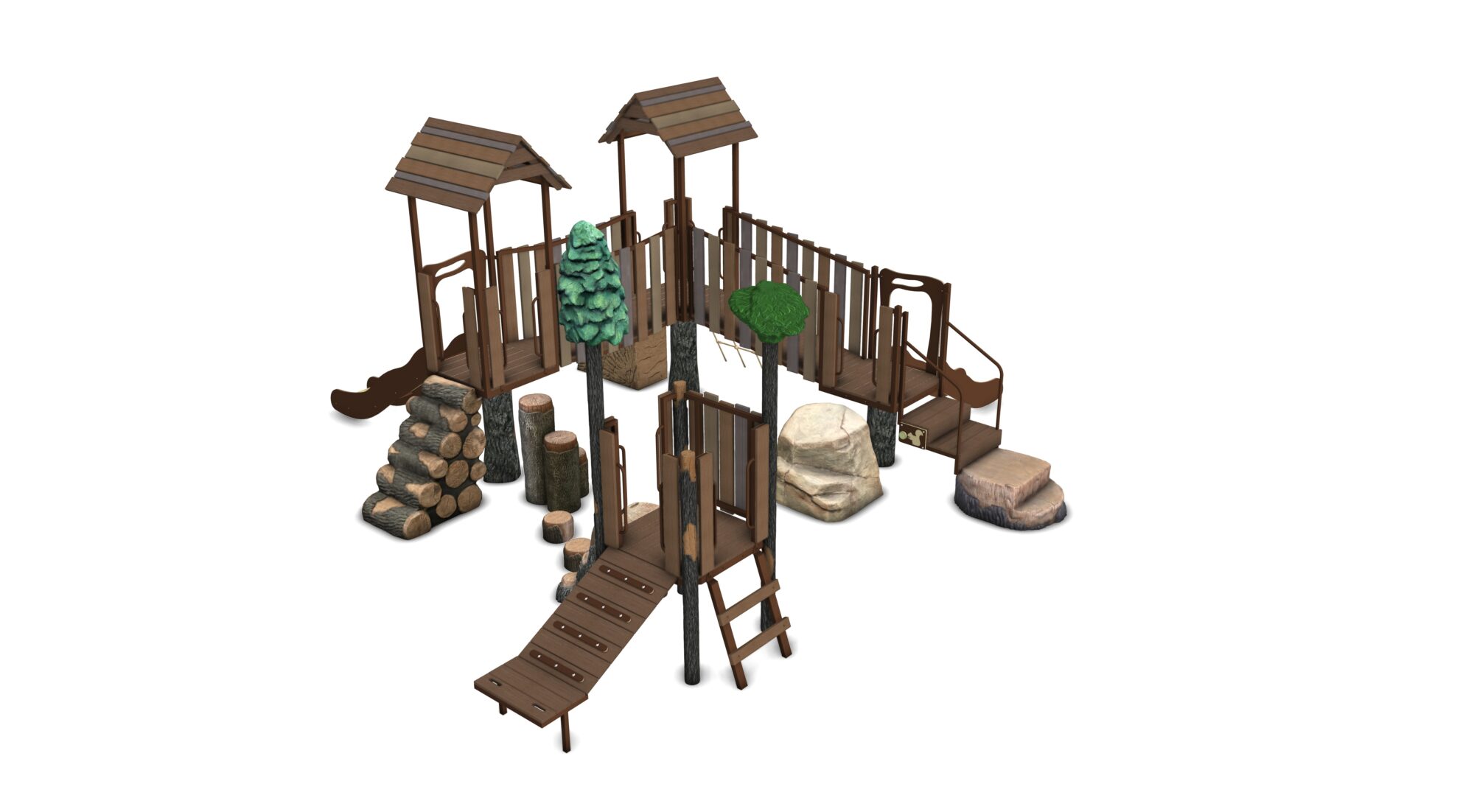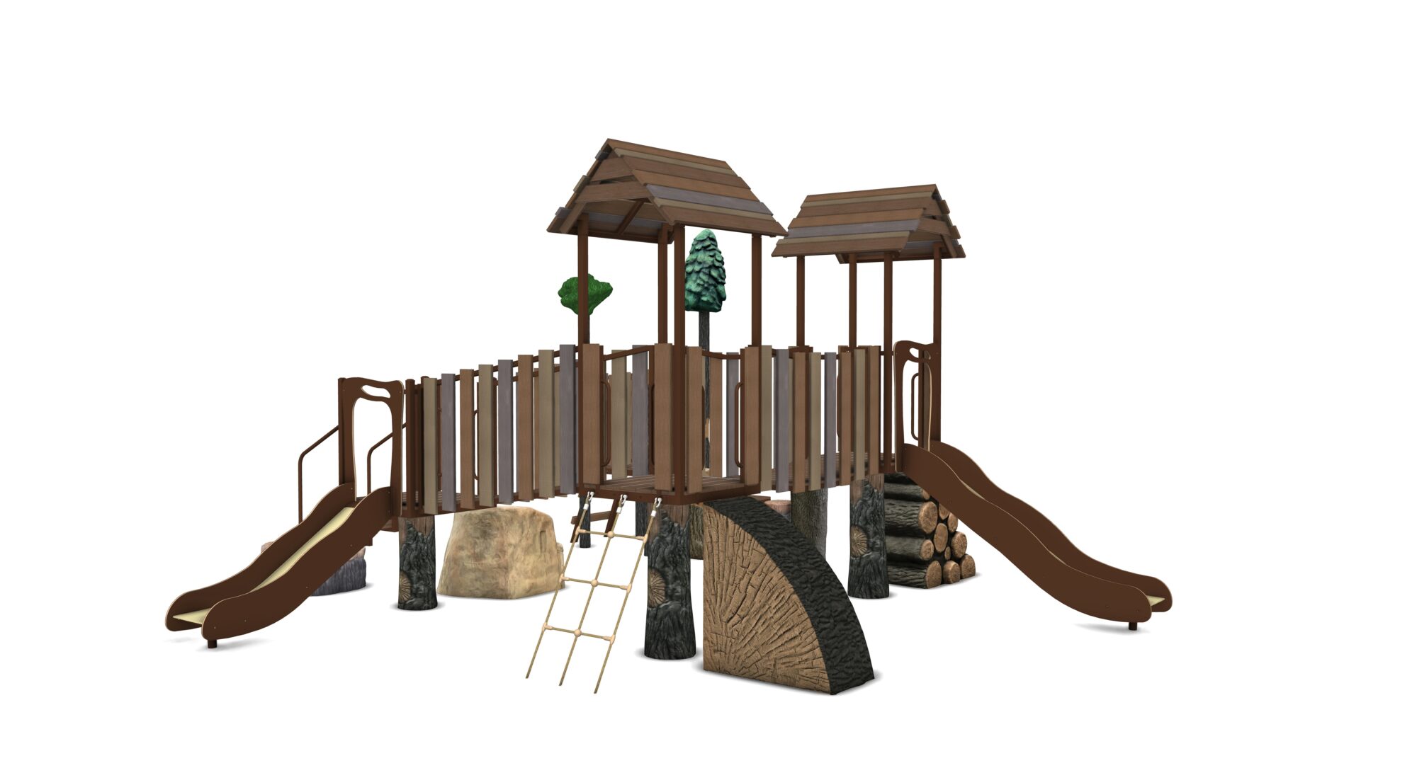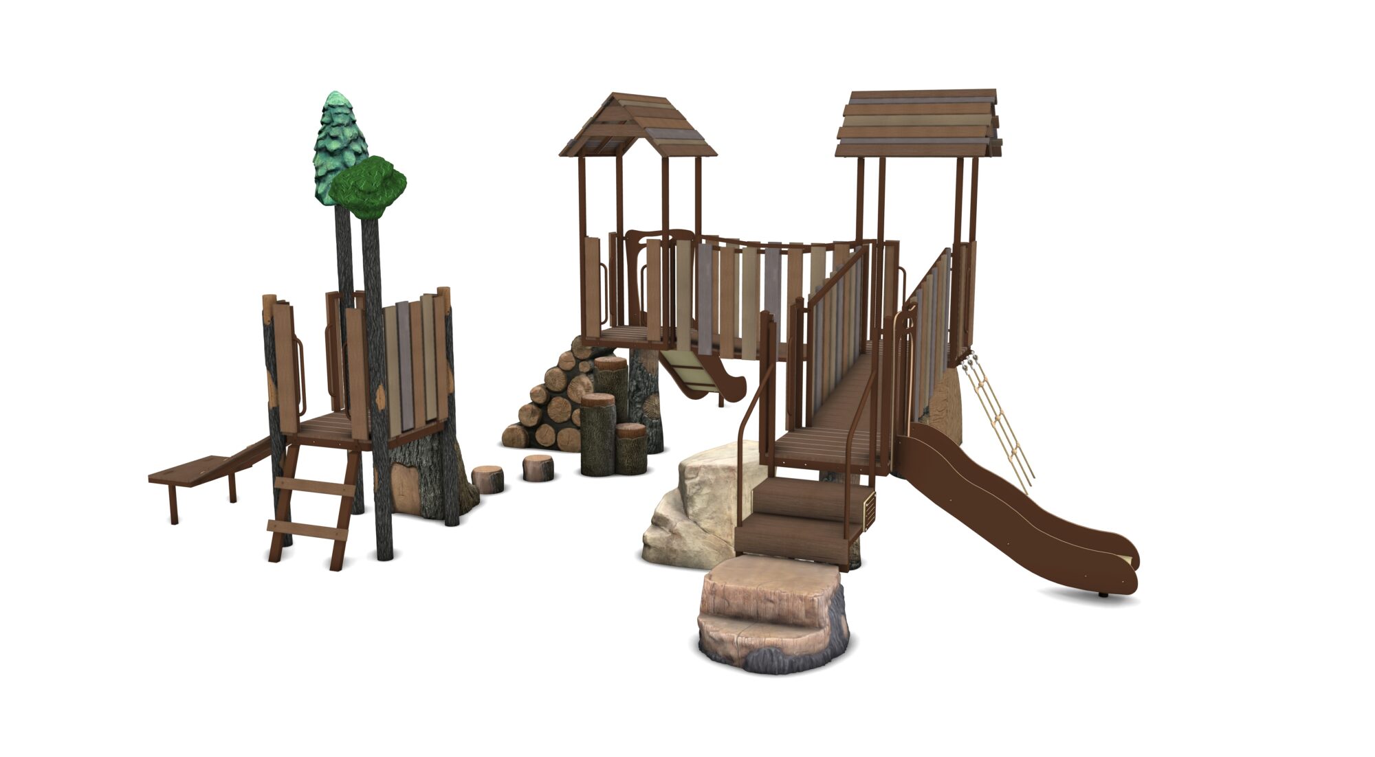 Pine Creek is a complete play system in our Deep Woods product line featuring modular components including the Boulder climber, Stump climber, Pine Tree topper, Tree Canopy topper, Incline Bridge and so much more! Our materials are selected to withstand extreme conditions and our proprietary blend of glass-fiber reinforced concrete(GFRC) allows us to achieve an amazing look and feel.