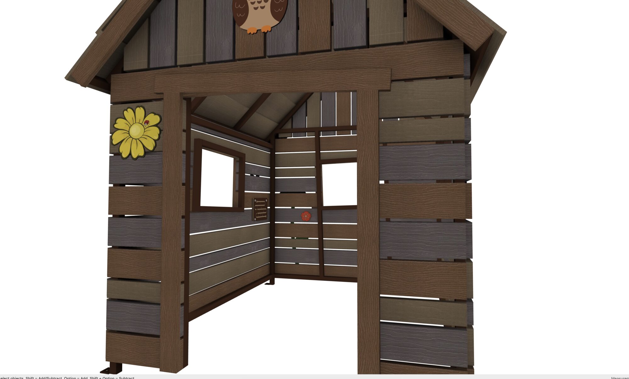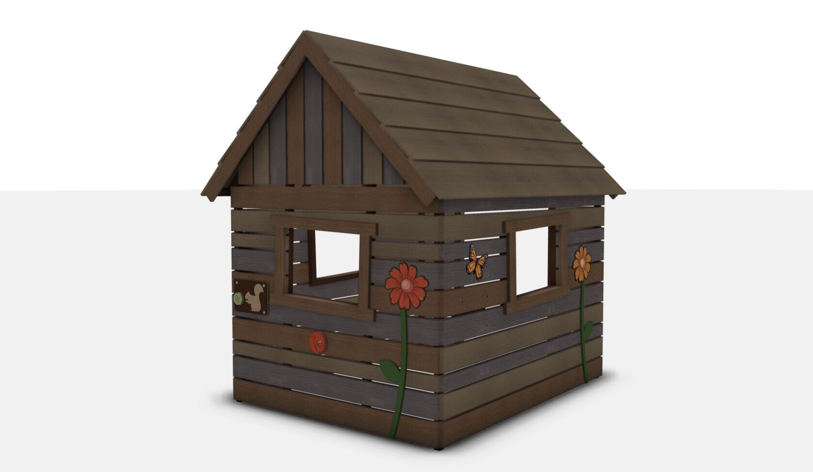 A fun, whimsical, and wonky clubhouse appears as kids built it themselves with found materials. Completel with 360 degrees of tactile nature finds. No need for painting, staining or annual repairs with this extremely durable play system built from durable steel and beautiful composite wood.