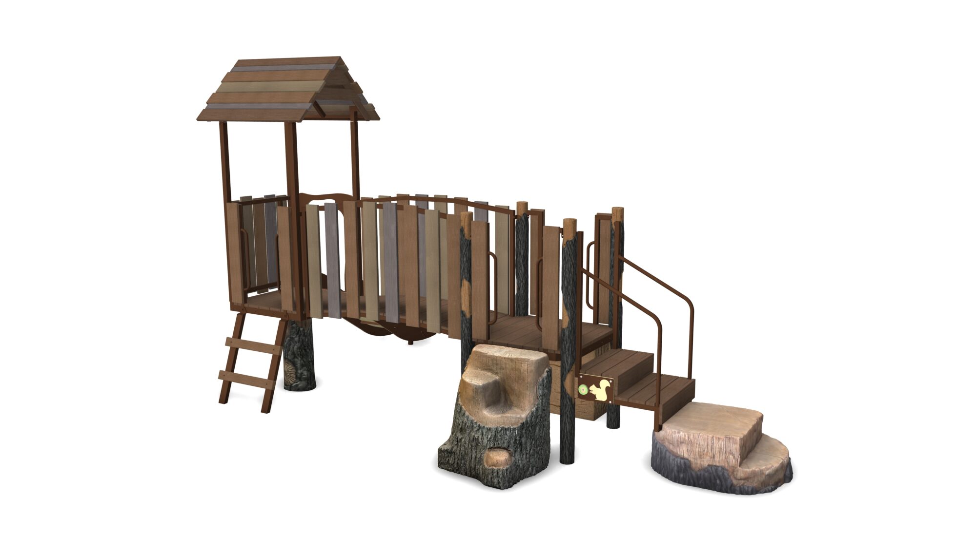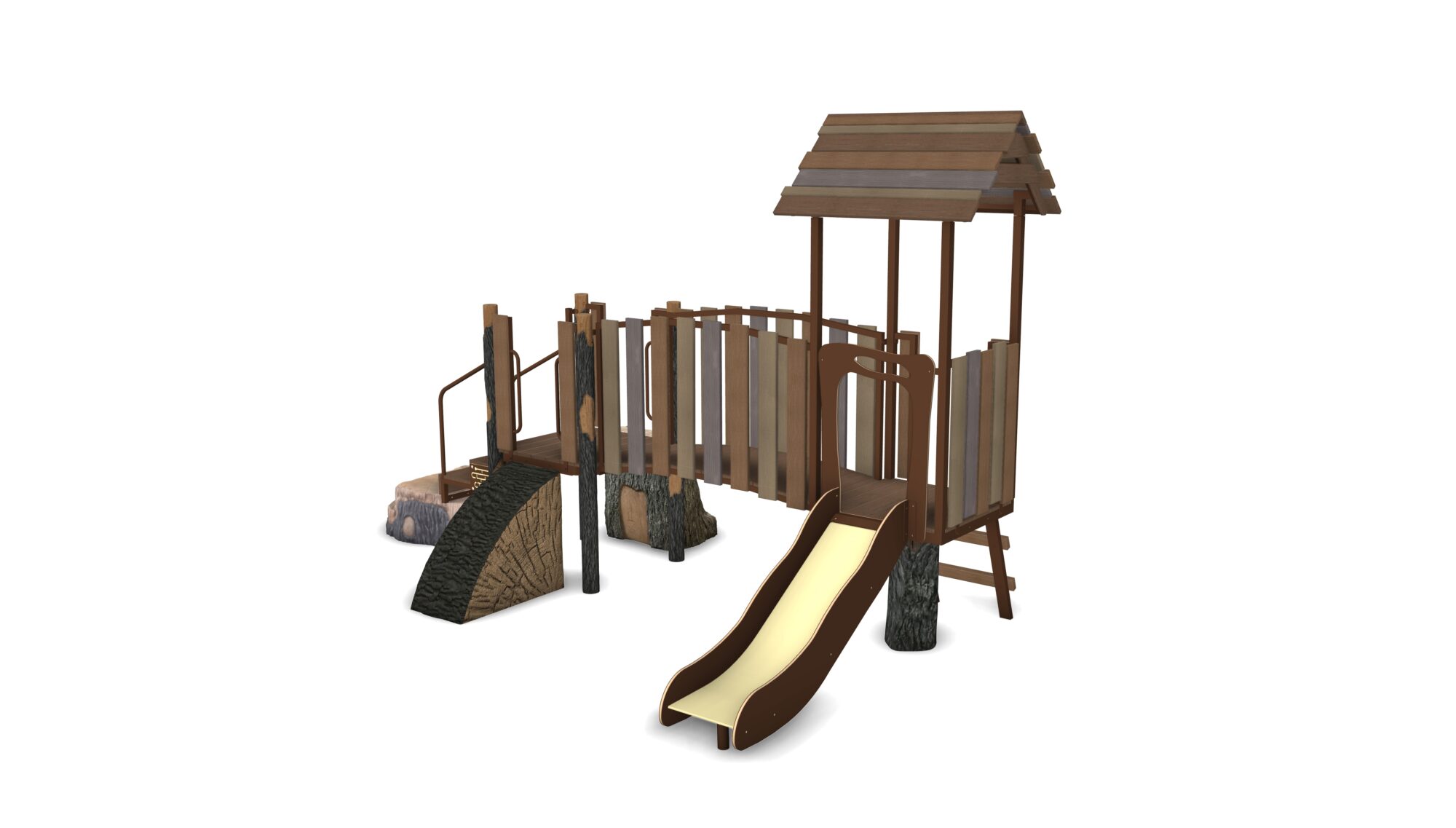Premiere is a complete play system in our Deep Woods product line featuring modular components including the Log Transfer, Wood Slice climber, Stream Slide and so much more! Our materials are selected to withstand extreme conditions and our proprietary blend of glass-fiber reinforced concrete(GFRC) allows us to achieve an amazing look and feel.