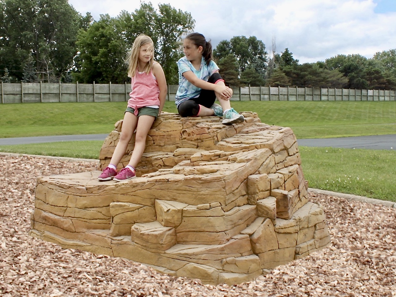 Manufactured to match its big brothers Ledge and Strato, the Switchback climber is designed to be an accessible climber- an industry first! The lowest platform conforms to transfer platforms guidelines. All four sides have various handholds and climbing surfaces varying in climbing difficulty. The Switchback also accepts 3’ slides, so reward the little ones who reach the summit!