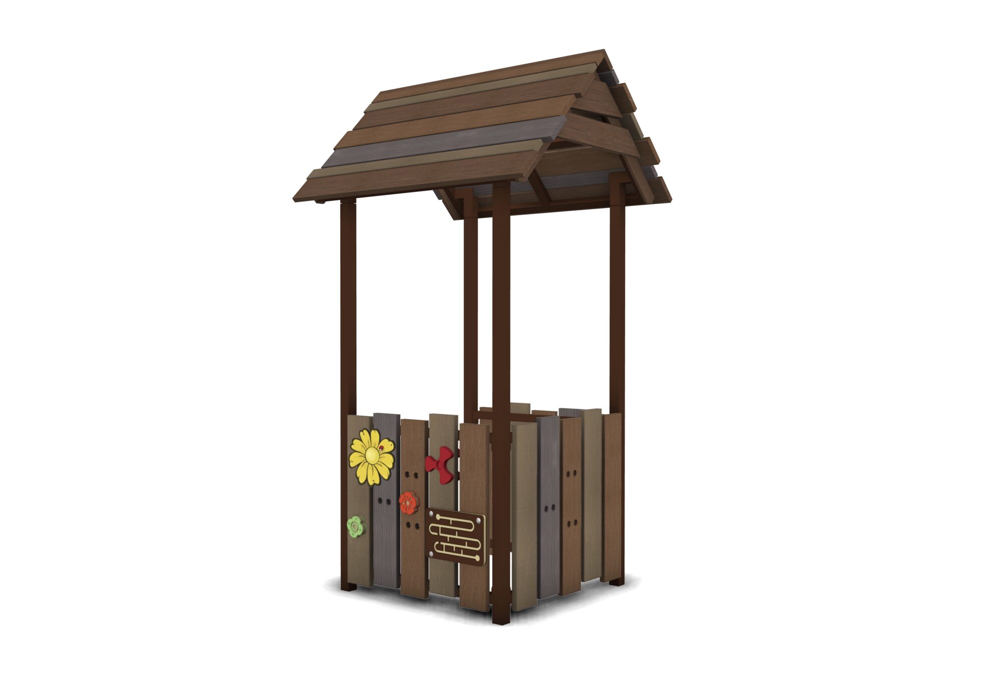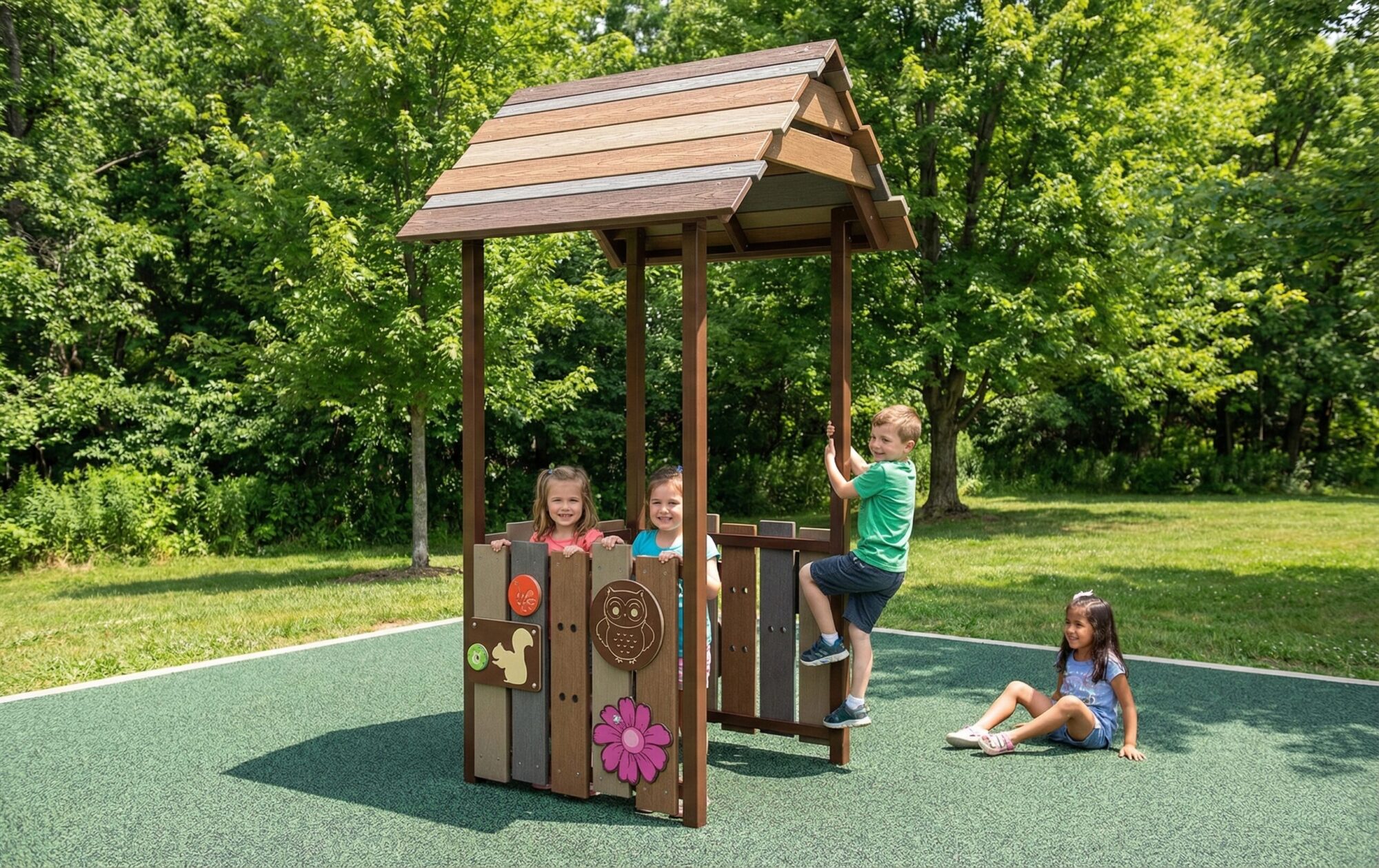 The Lodge is the perfect hang for ages 2-12. Perfect for indoor or outdoor play, The Lodge features several interactive panels and games. Built for extreme durability.