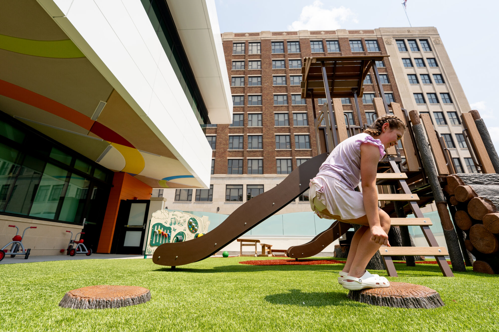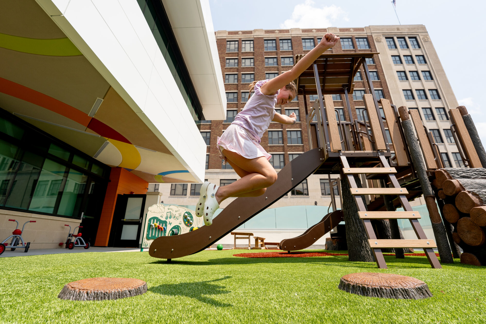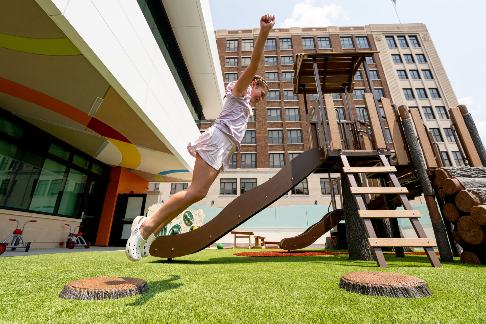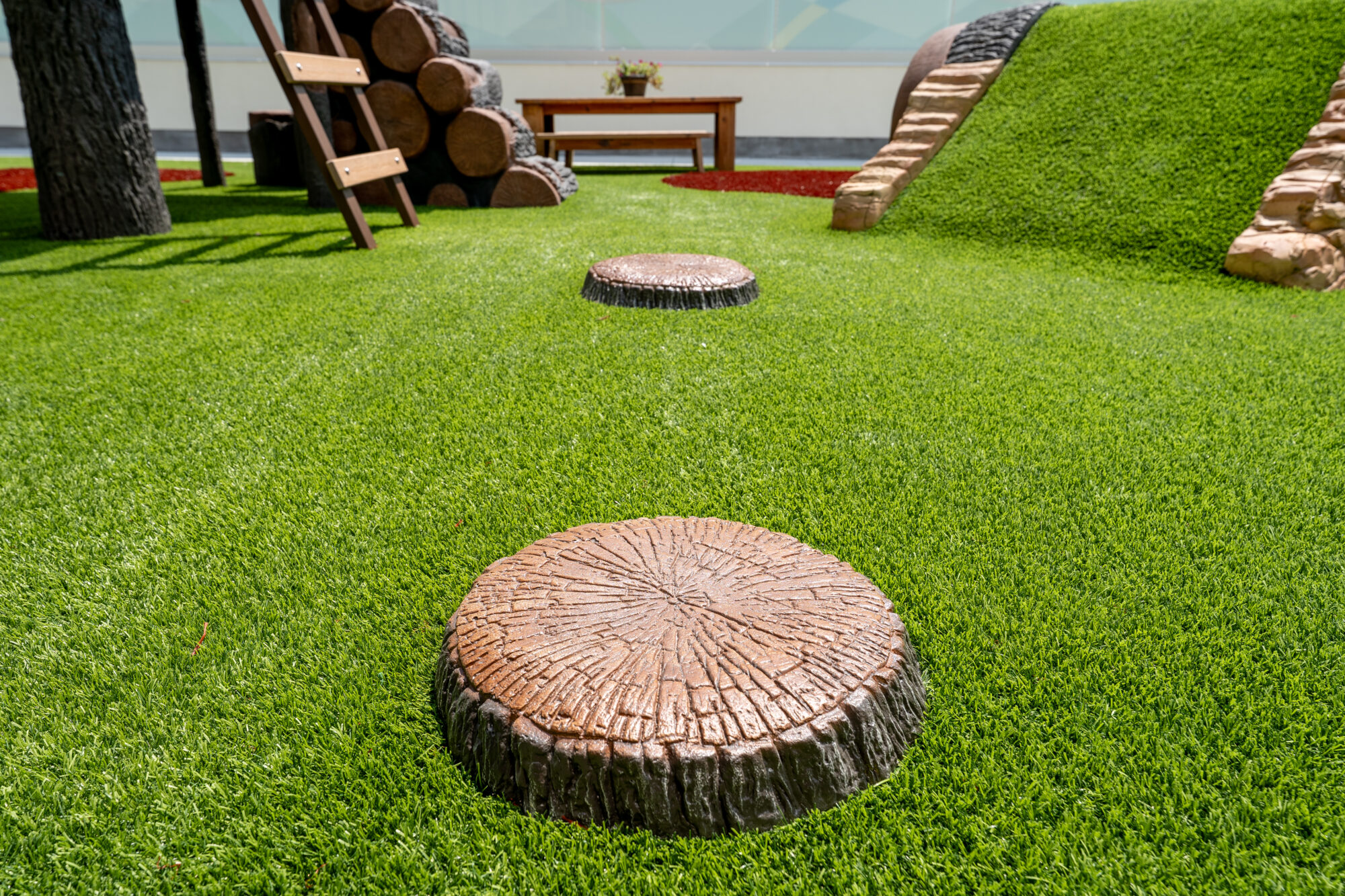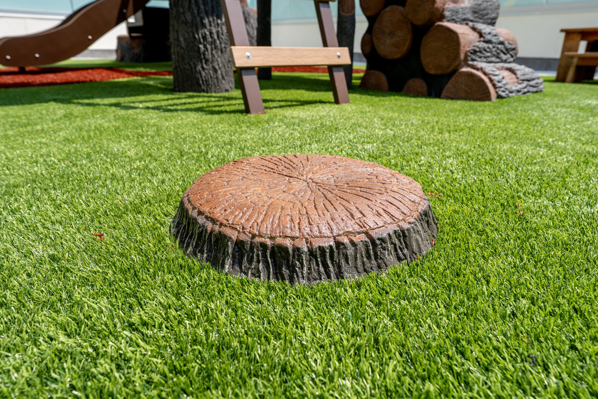 Creatively themed tree slices as a balance or stepping features. Constructed from Glass Fiber Reinforced Concrete (GFRC), these have the appearance of a real tree with a flattened top for walking stability.