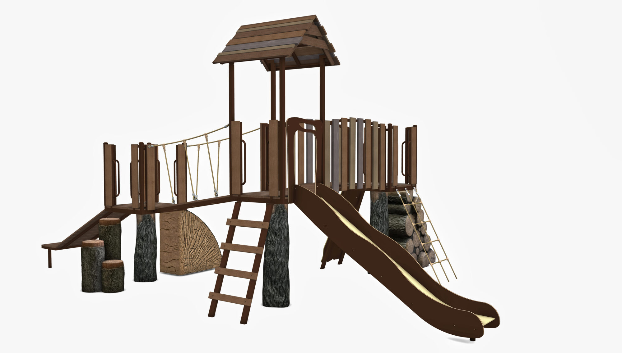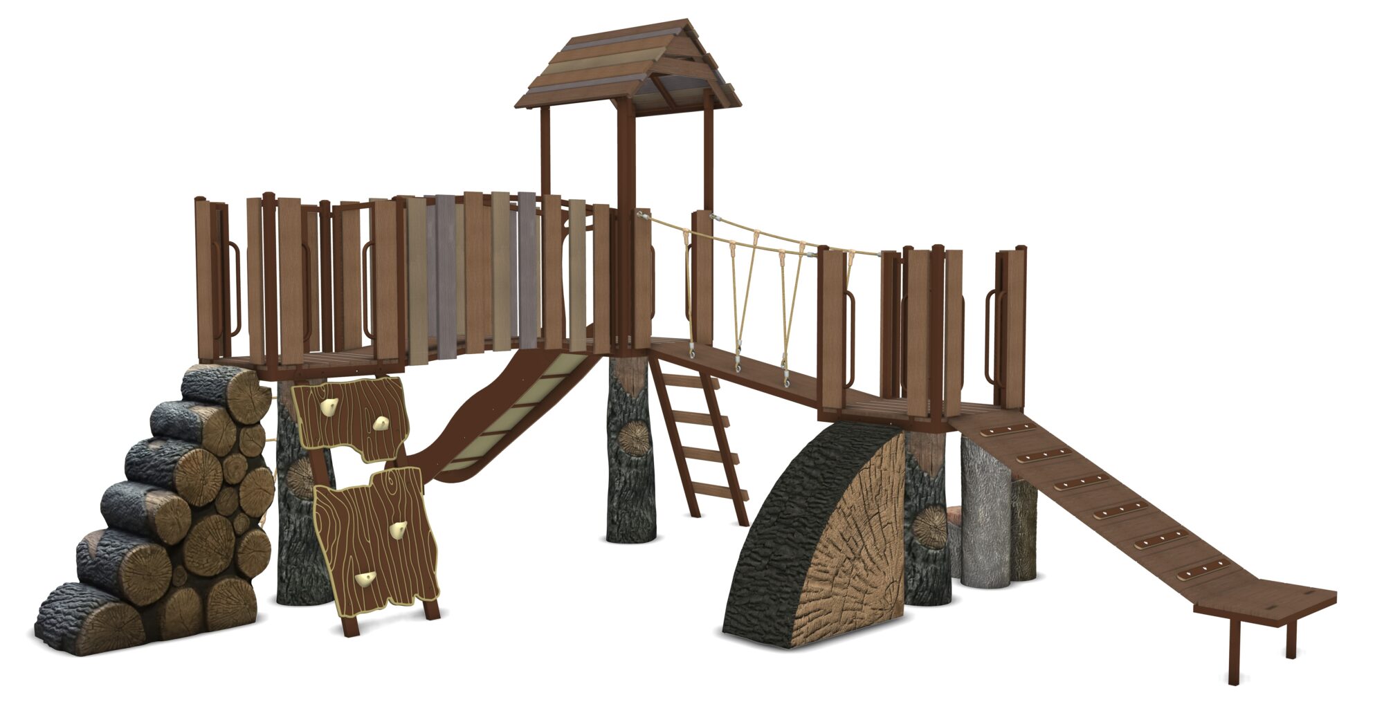 Whispering Willow is a complete play system in our Deep Woods product line featuring modular components. Our materials are selected to withstand extreme conditions and our proprietary blend of glass-fiber reinforced concrete(GFRC) allows us to achieve an amazing look and feel.