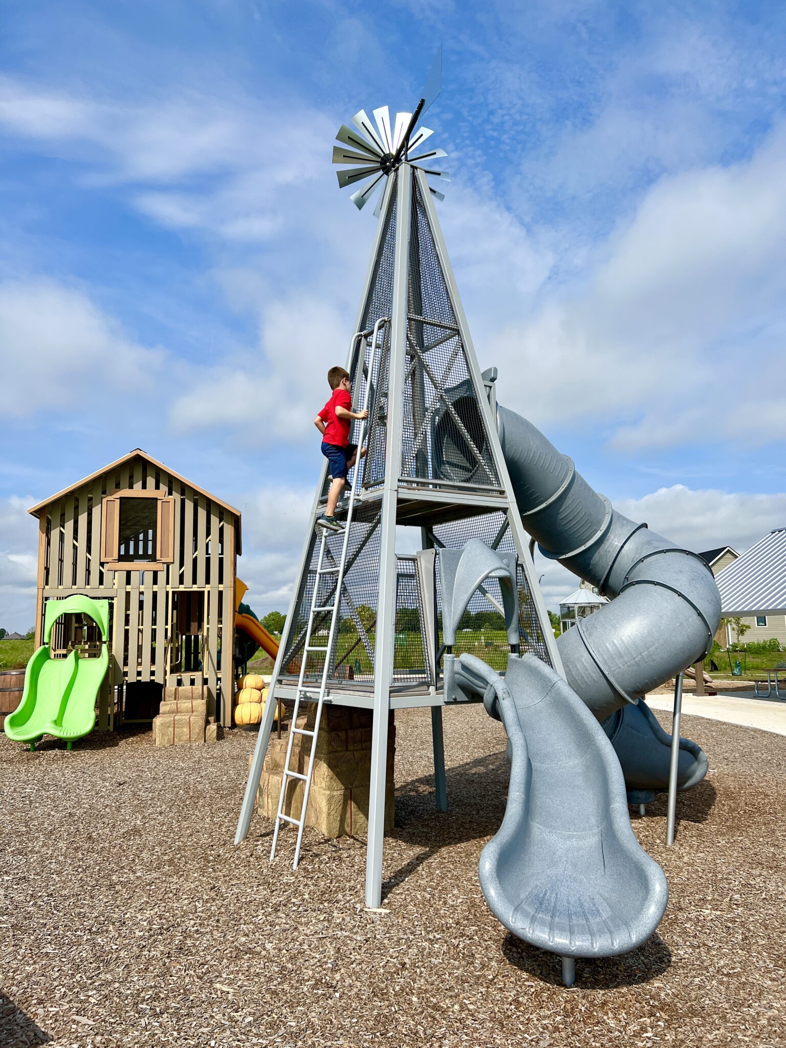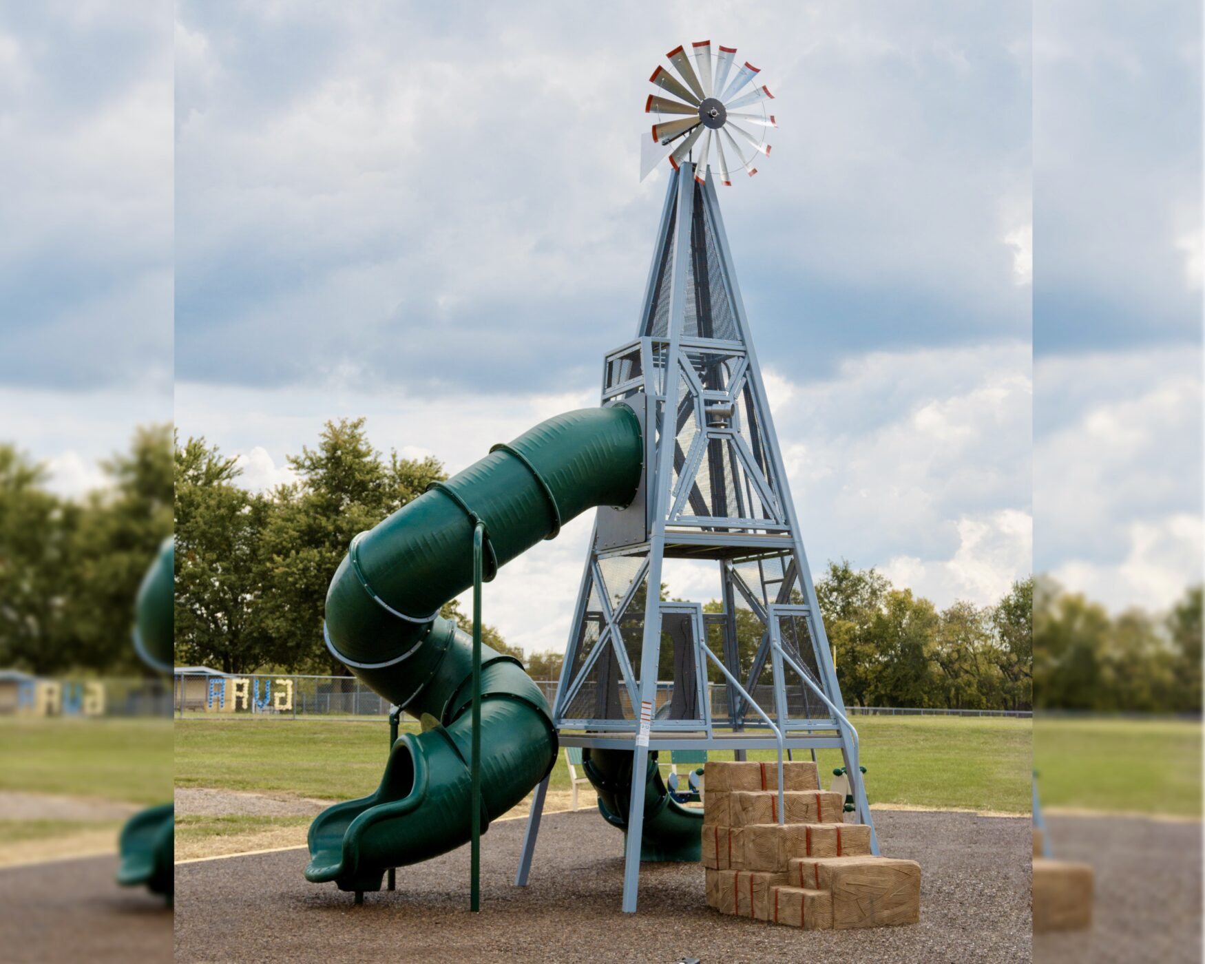 A tower packed with power, this play system is loaded with interactive play. The fun starts at the Hay Bale ADA transfer platform, but the adventure doesn’t stop even at the top! Explorers will climb Windmill Tower to discover birds-eye views of the park from a 4’ and a 9’ deck with telescope. The fun continues with multiple slides including an 9’ spiral tube slide. Best of all– the windmill is a true working windmill! All Cre8Play play systems are constructed for extreme durability to withstand the harshest of environments.