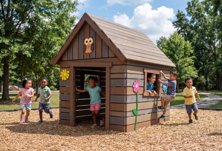 A fun, whimsical, and wonky clubhouse appears as kids built it themselves with found materials. Completel with 360 degrees of tactile nature finds. No need for painting, staining or annual repairs [...]
