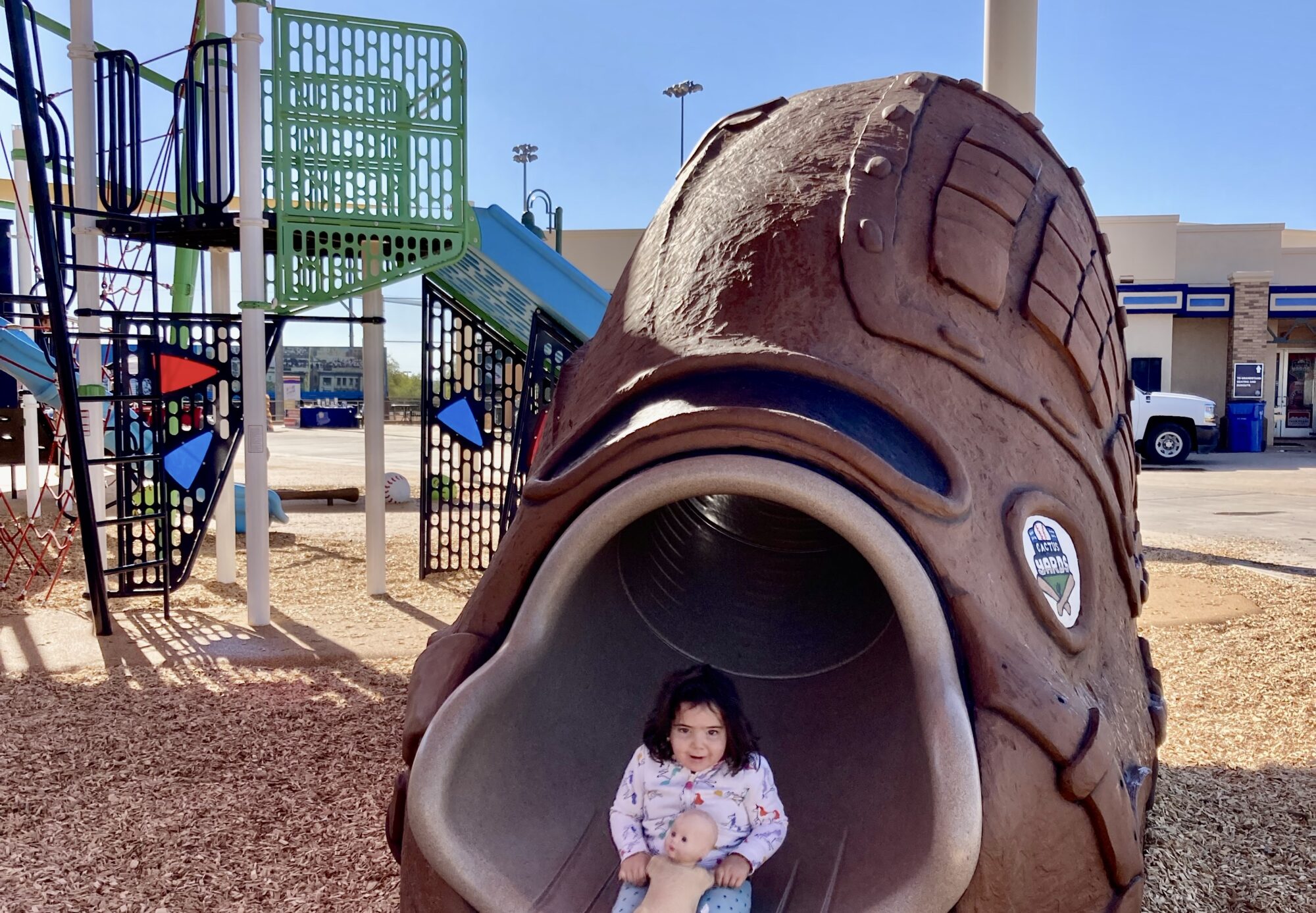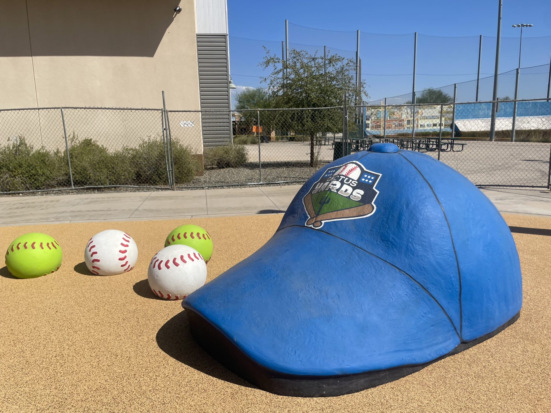Sports themed products turn this baseball-themed playground into a grand slam! Cactus Yards sports complex in Arizona is the new home of an immersive play experience featuring oversized Baseball climbers, a Giant Baseball Bat climber, the Catcher’s Mask photo-op and climber, the Hat climber and the very popular Baseball Glove Climber with Slide! Batta Batta, sawingg Batta!