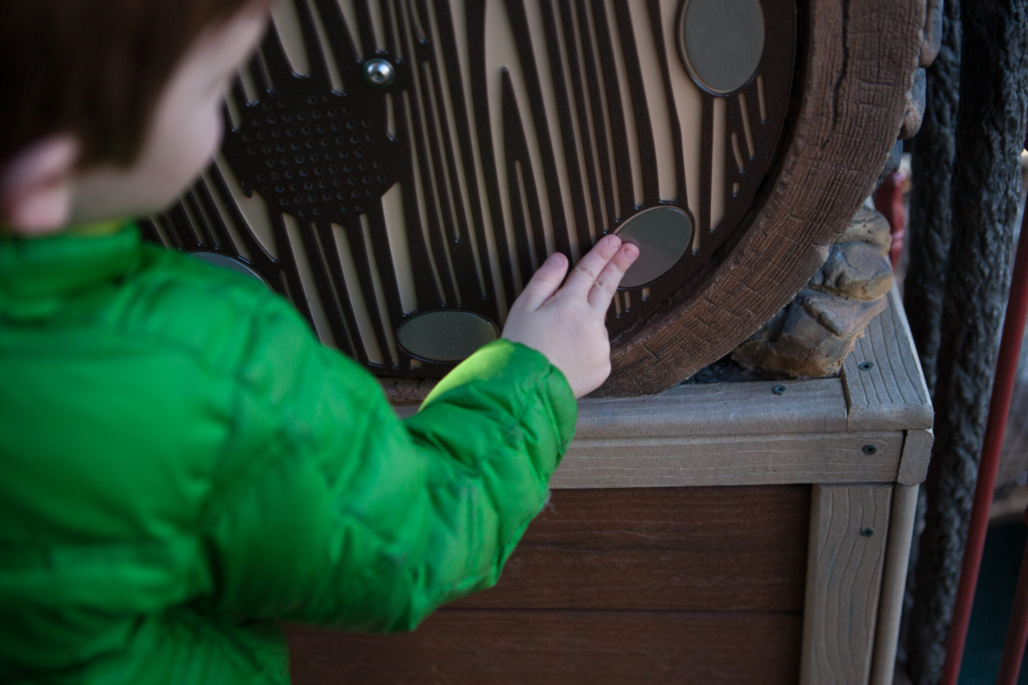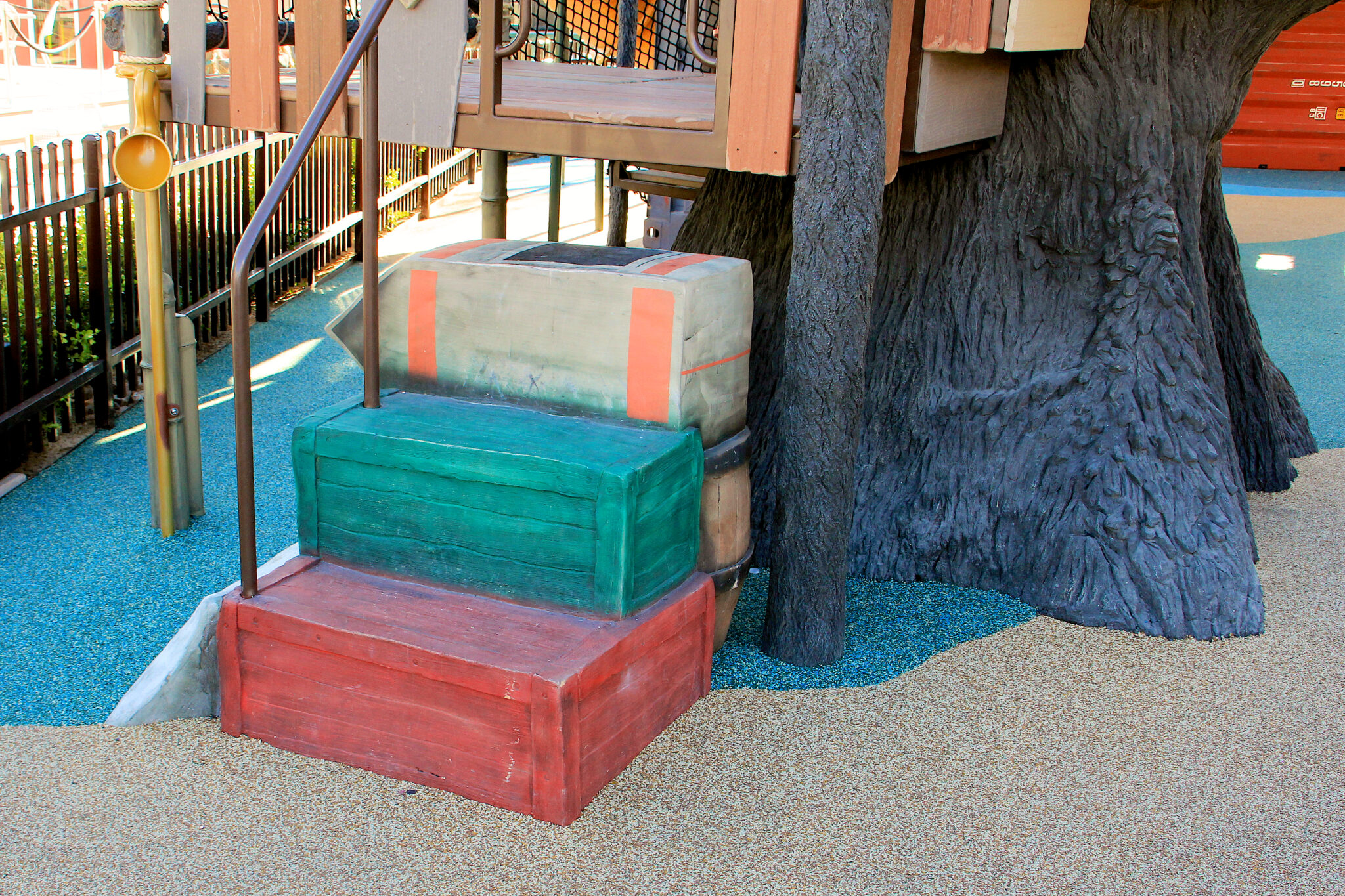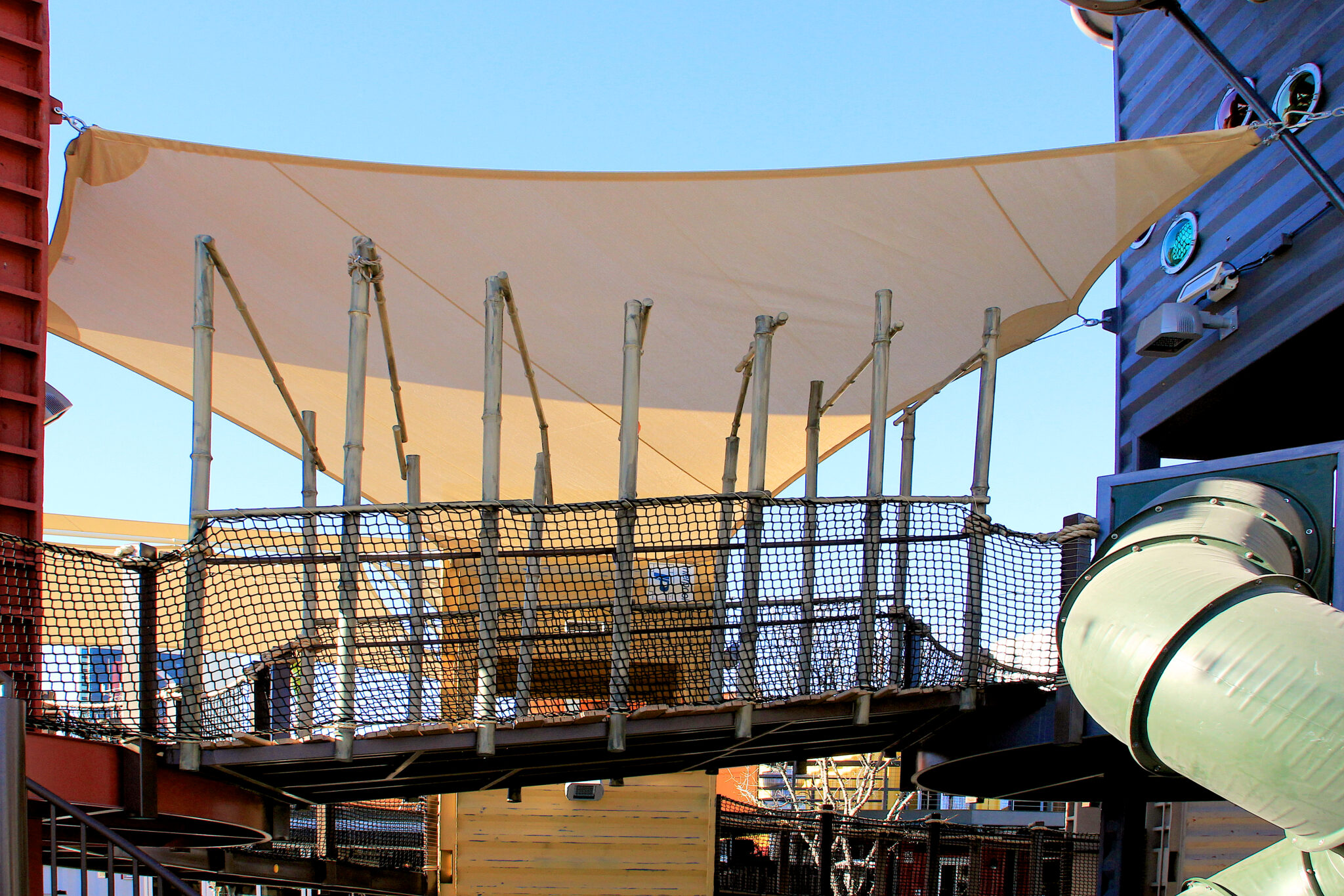 Located on Fremont Street in downtown Las Vegas, Container Park hosts small local shops, eateries and community-focused activities for the families of Las Vegas. When we were asked to design and build an interactive play exhibit for the park our answer was obvious… “We’re All-In!” Local businesses border the park and operate from repurposed shipping containers. Naturally, the play exhibit which would be located in the center of the park needed to incorporate shipping containers as well. The concept is Swiss Family Robinson treehouse meets urban art. This is an all-ages park- kids and adults can climb to the top of a 40’ high container that stands end-on-end and lean against a 30 degree look-out window for a view of the entire park. Energy-savings sensors in the tube slide are triggered to activate cosmic, starship, hyper-drive and fish tank visual displays as well as a sonic boom and blast of air. Take the wonky bridge to the ‘living tree’ which has a concrete trunk with real live vegetation at the top! Other elements include the wind spinner art exhibit and a treasure hunt that will send kids and adults on an adventure!
