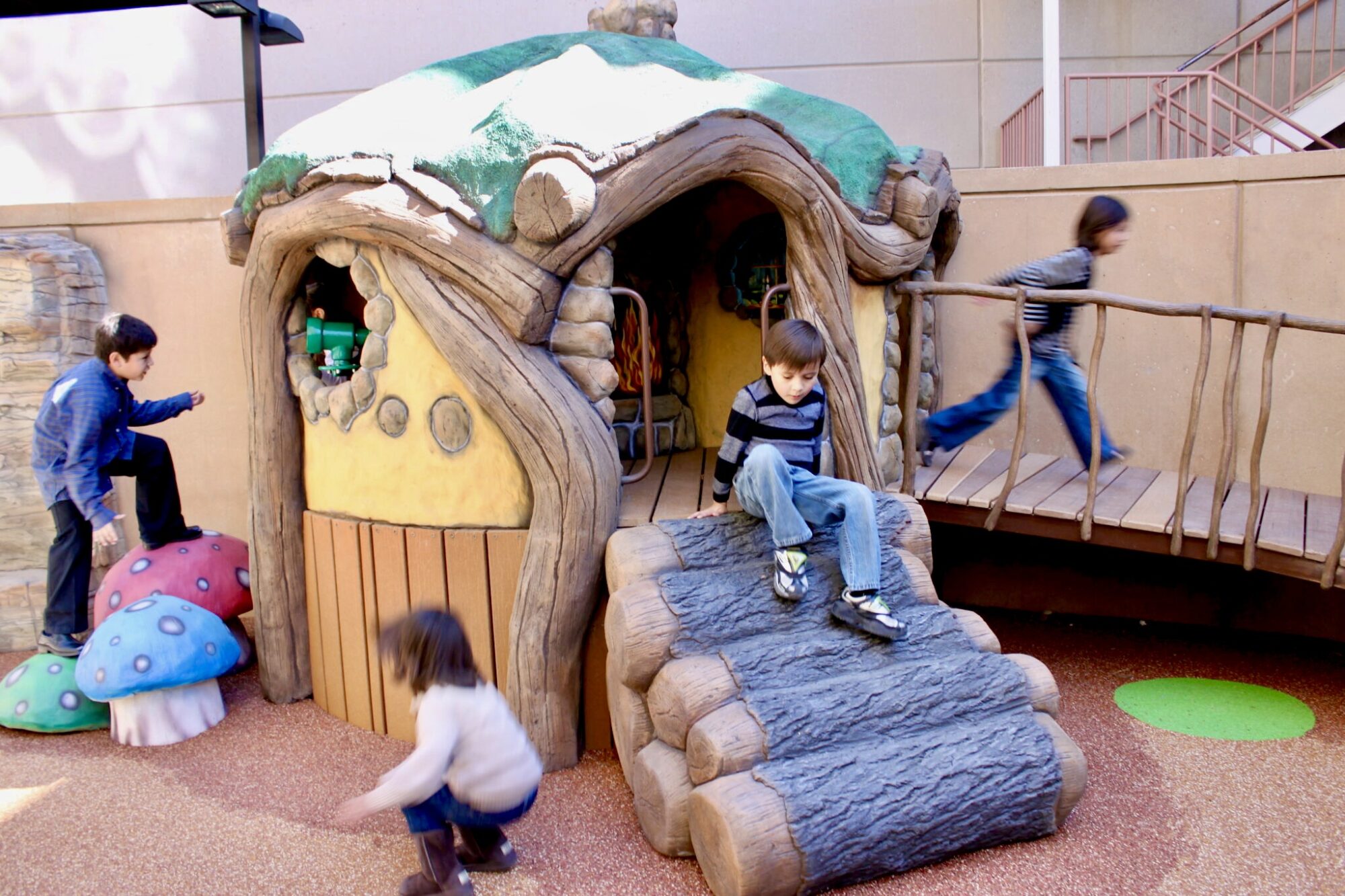 The stress of spending extended time at a hospital is real. At the El Paso Children’s hospital, children enter a fully accessible sensory-rich space, they’re immersed into a fantasy of play with realistic surfaces including a variety of exhibits such as hollow trees, themed forest floor, wall murals, streams of water, tree forts, and more.