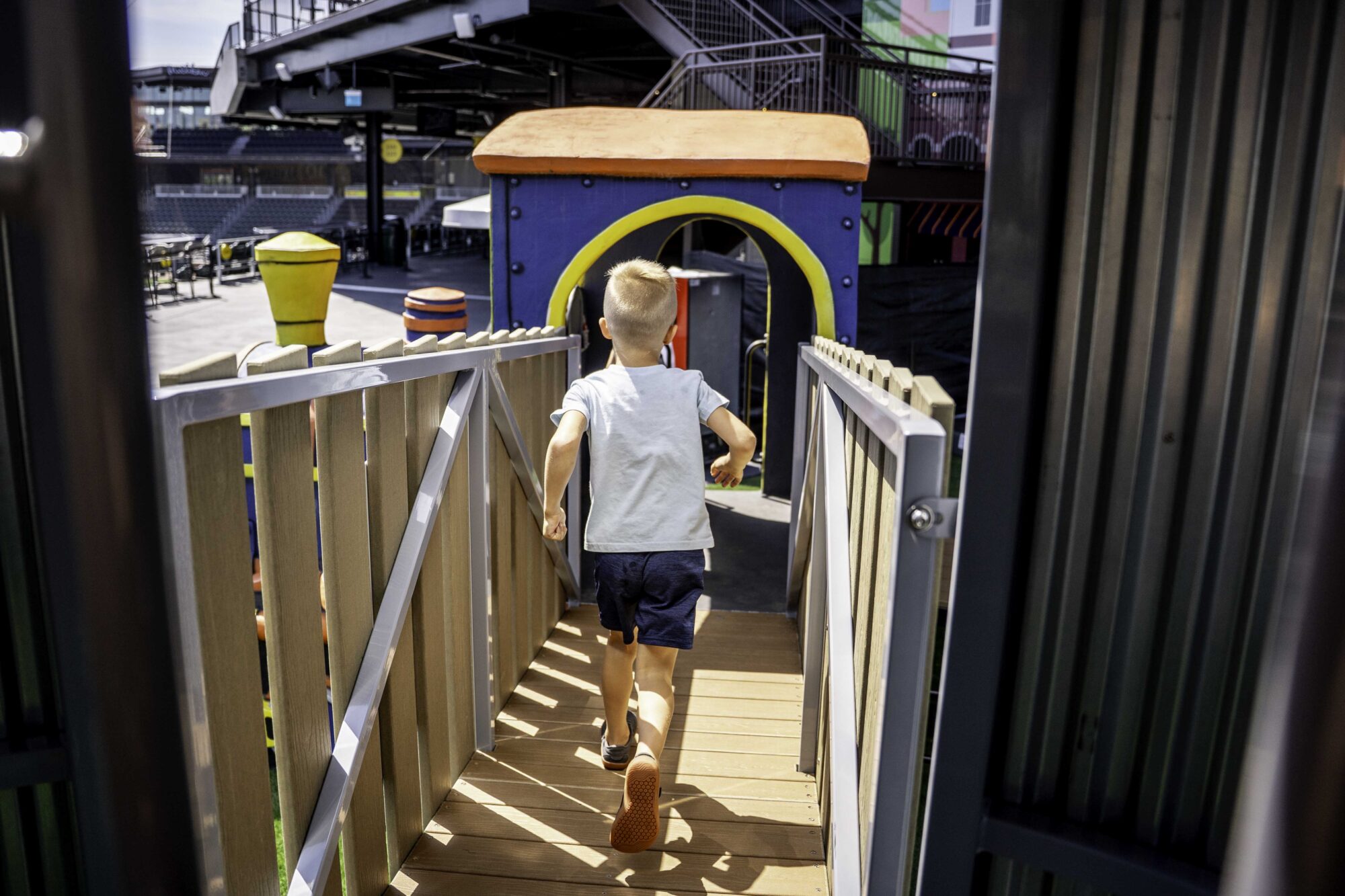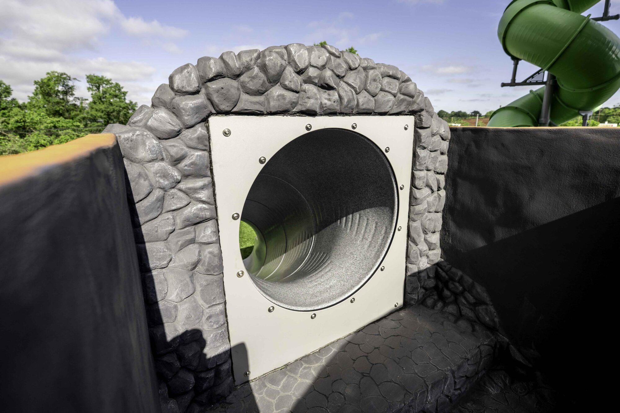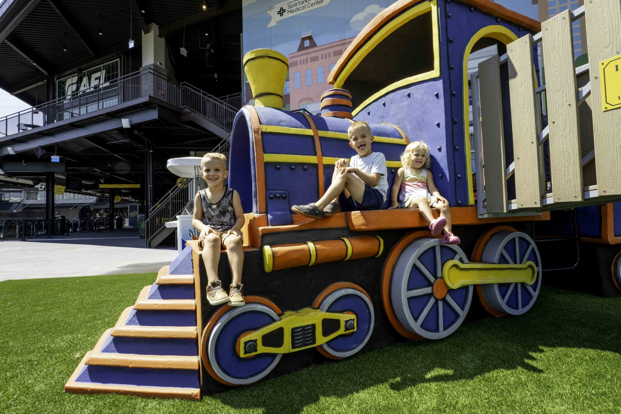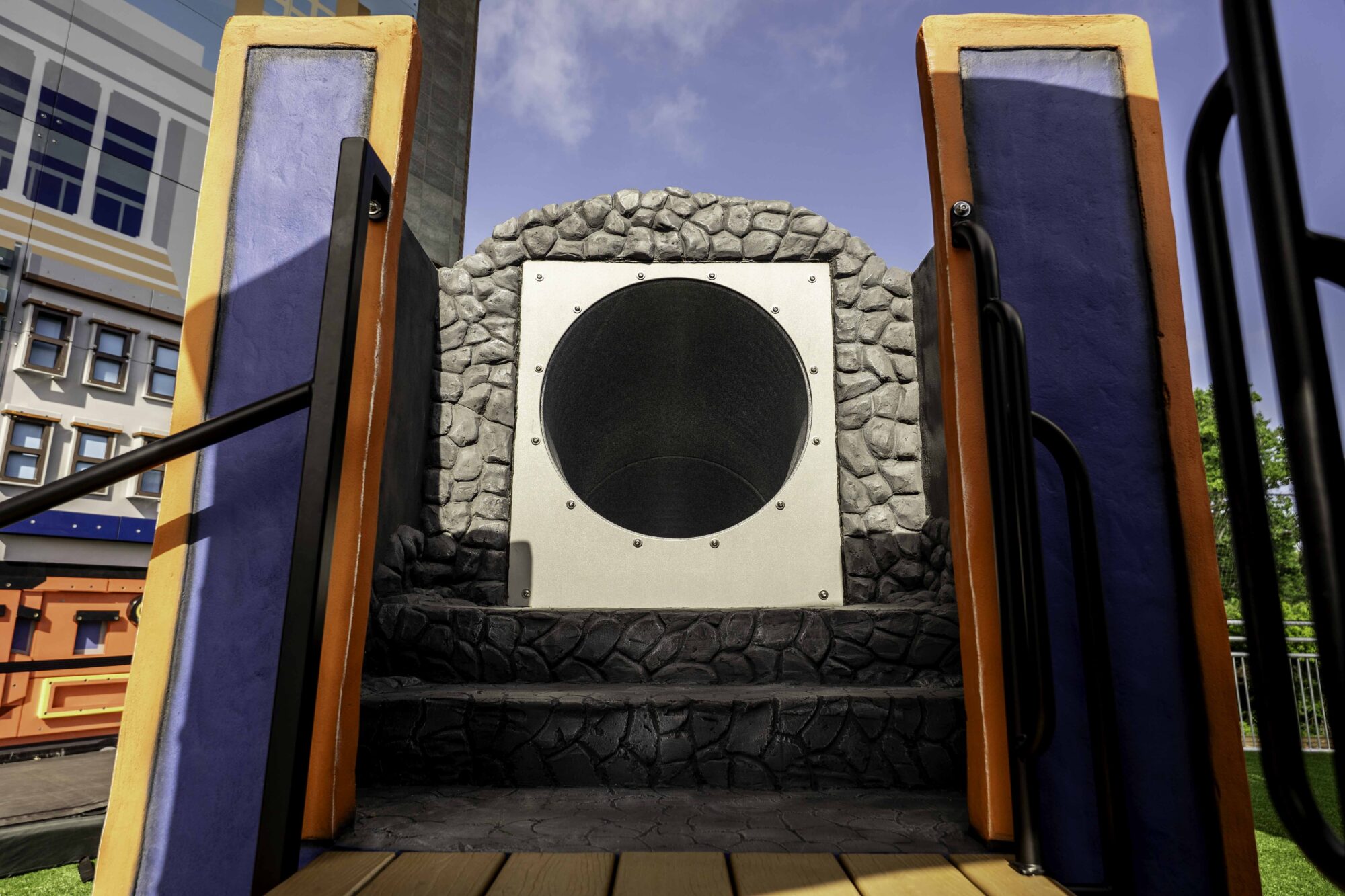 A one-of-a-kind playground designed and built for Fifth Third Park, home of Hub City Spartanburgers minor league baseball team! This immersive play environment celebrates Spartanburg, South Carolina’s agricultural industry, as well as its rich history as a major railroad hub. Baseball fans will also learn about the history of the town they love as they climb onto the train from multiple access points and slide down the coal bunker. They can also take a fun bridge from the train to the silo where they’ll find a challenging vortex rope climb to a 30 degree look-out window and twisty slide at the top! And if that wasn’t enough, they’ll have fun with multiple interactive games including, you guessed it, a baseball themed scavenger hunt! ⚾️