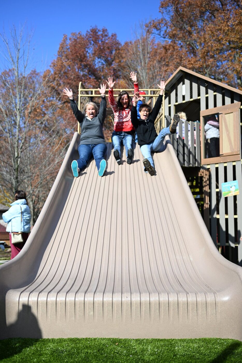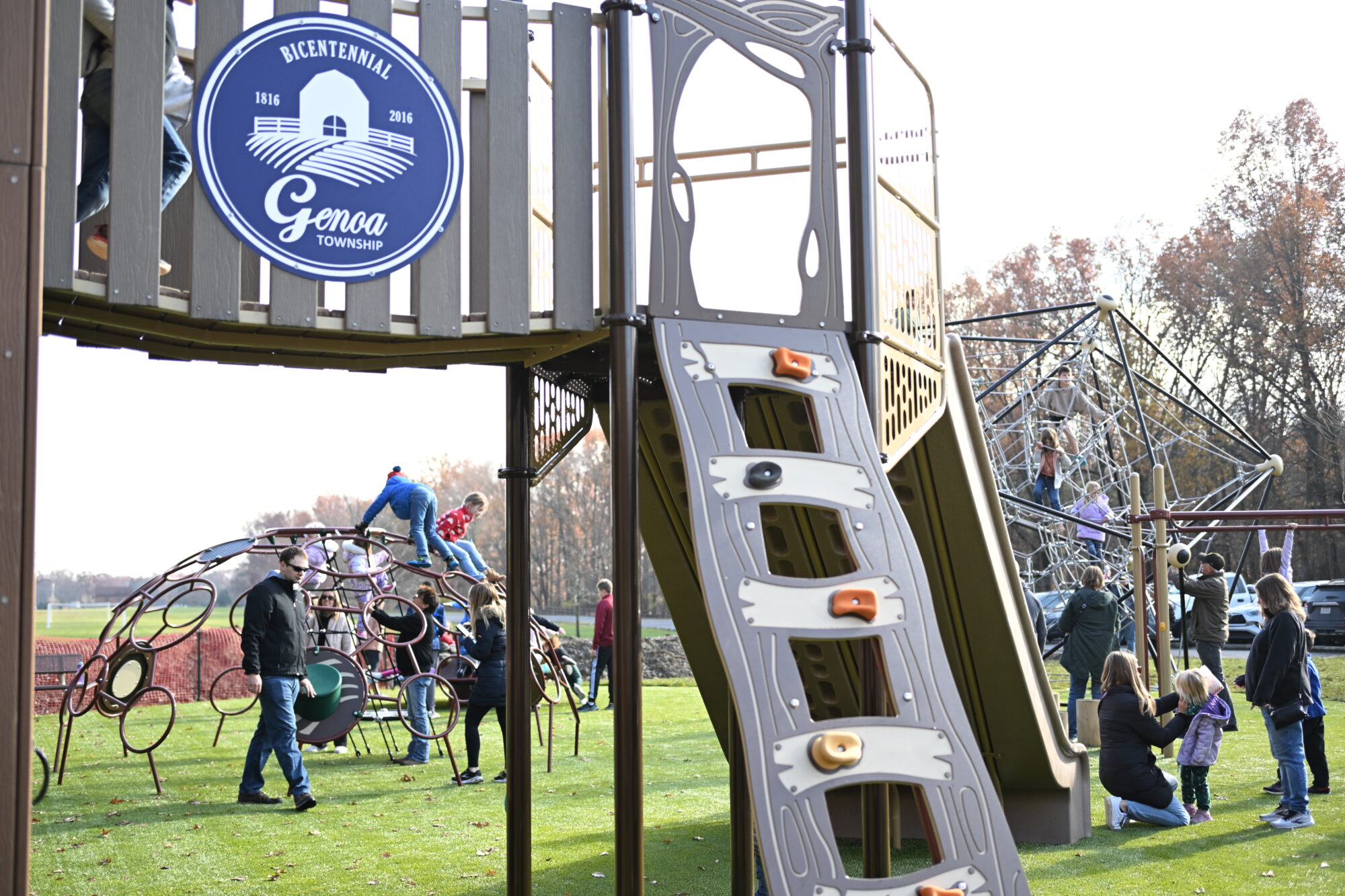 A slightly modified Big T Barn creates a one-of-a-kind play experience for all. A big barn with BIG fun, this play system for Genoa Township, OH features multiple climbers including the Barrel and Sacks Climber, the Pumpkin Climber, three slides, haybale and crate access components, climbing walls, a scavenger hunt, and so much more. Kids are immersed into a world of play that is inviting to people of all abilities and ages.