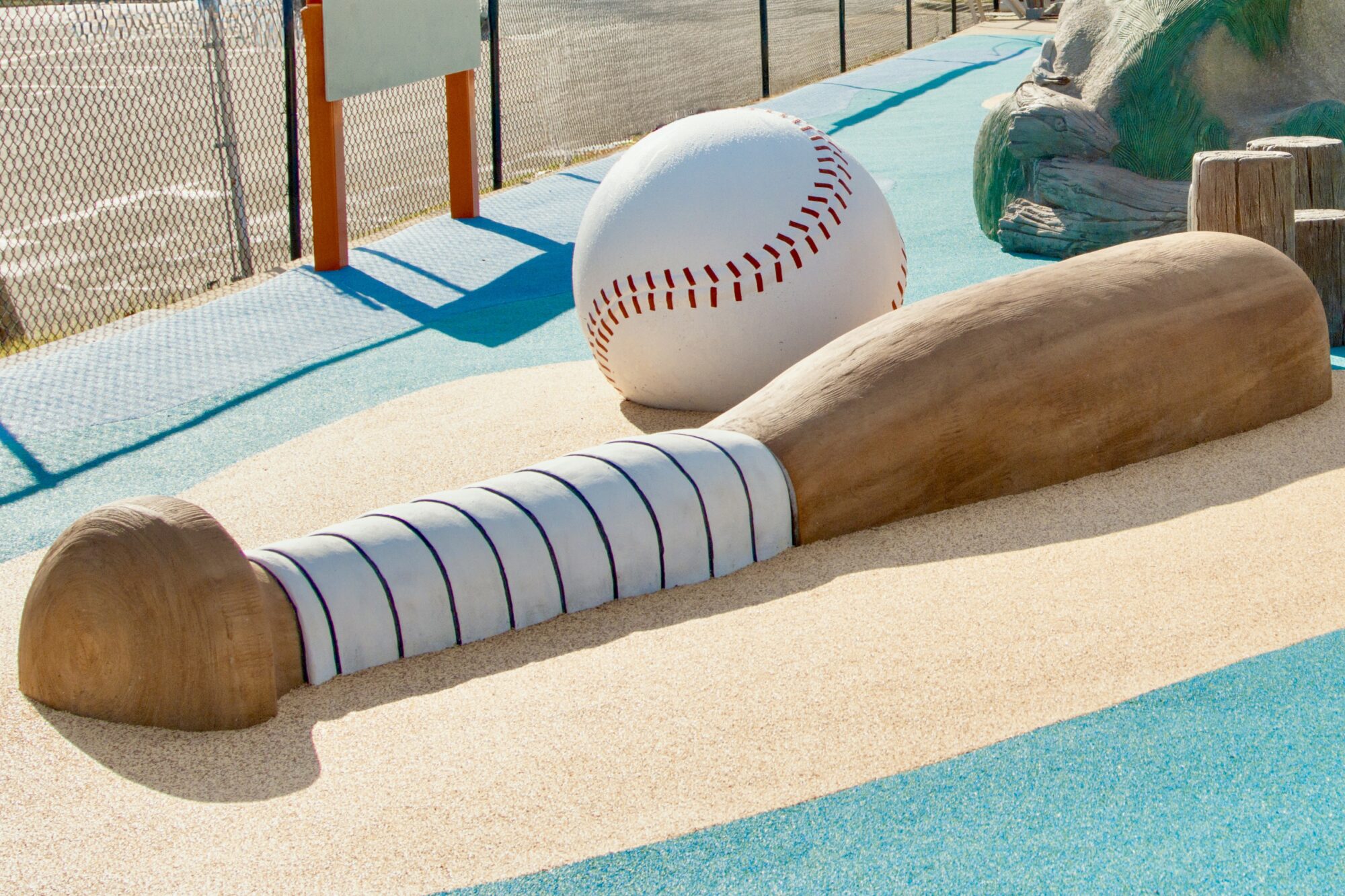 Orange, teal, black, and white are the official colors of the Chesapeake Baysox and make for a vibrant maritime playground just beyond the first baseline fence!