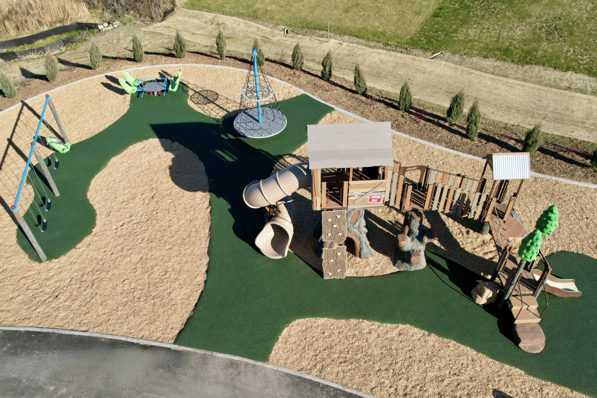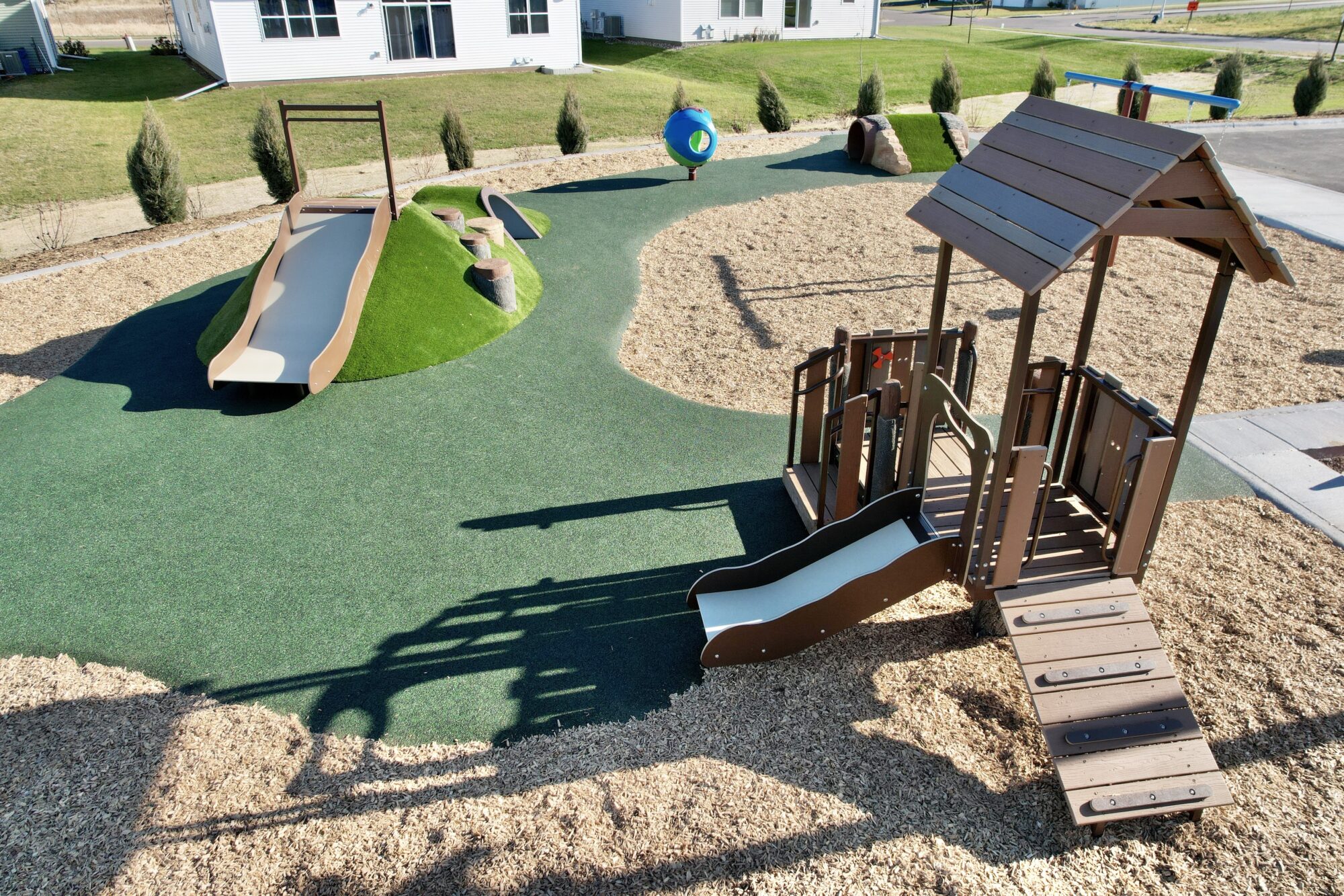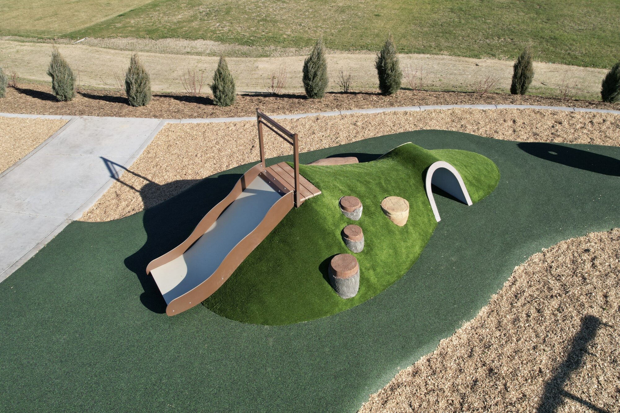Territorial Park in Rogers, MN offers play systems for the 2-5 age group and for ages 5-12. Lil’ explorers aged 2-5 climb, crawl, and slide on a nature-themed play mound and on the Patty Cake play system loaded with interactive fun, including sensory play panels.