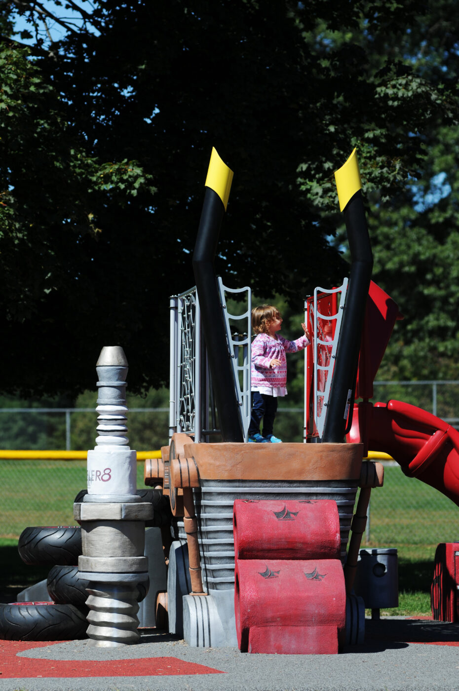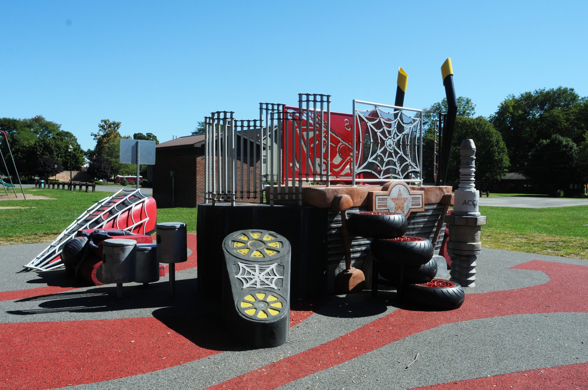 Cre8Play designed and built this one-of-a-kind motorcycle-themed playground for Paul Jr. Designs of American Chopper and is located at Veterans Memorial Park. This fun and unique experience features play climbers and products modeled after the show’s Black Widow and Anti-Venom motorcycles.